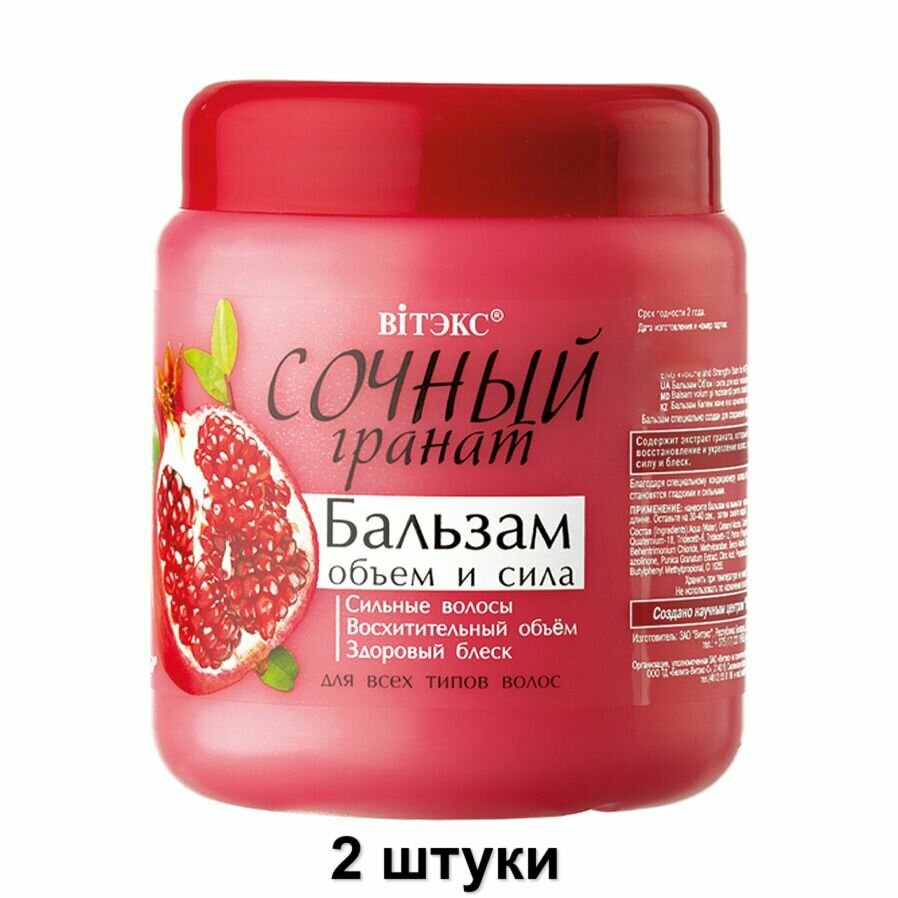 Купить Витэкс Бальзам для всех типов волос "Сочный гранат" Объем и сила, 450 мл, 2 шт