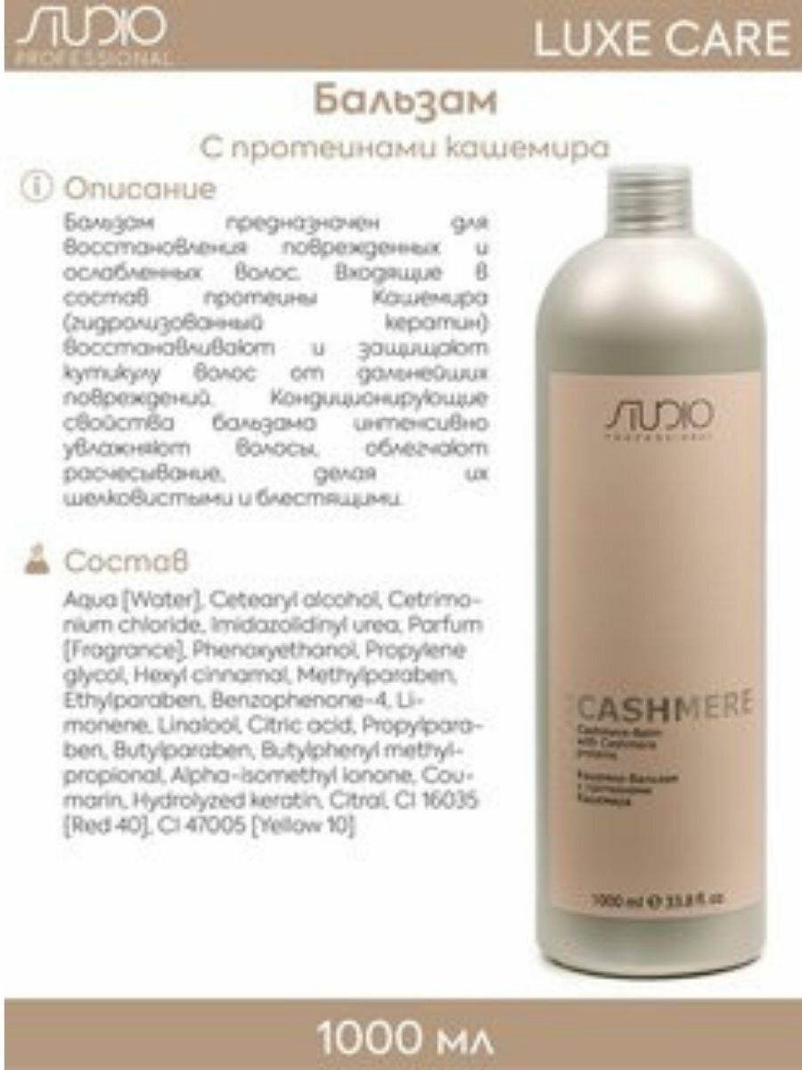 Кашемир-Бальзам с протеинами кашемира Kapous Studio Professional «Luxe Care», 1000 мл интересное: