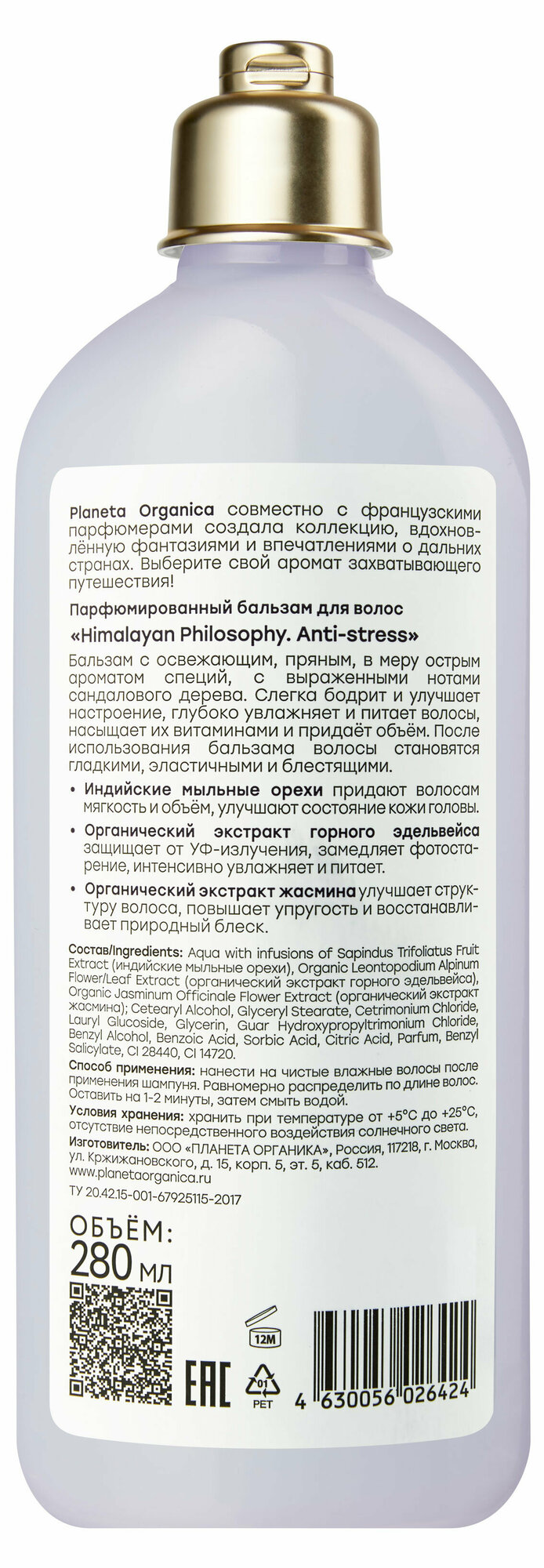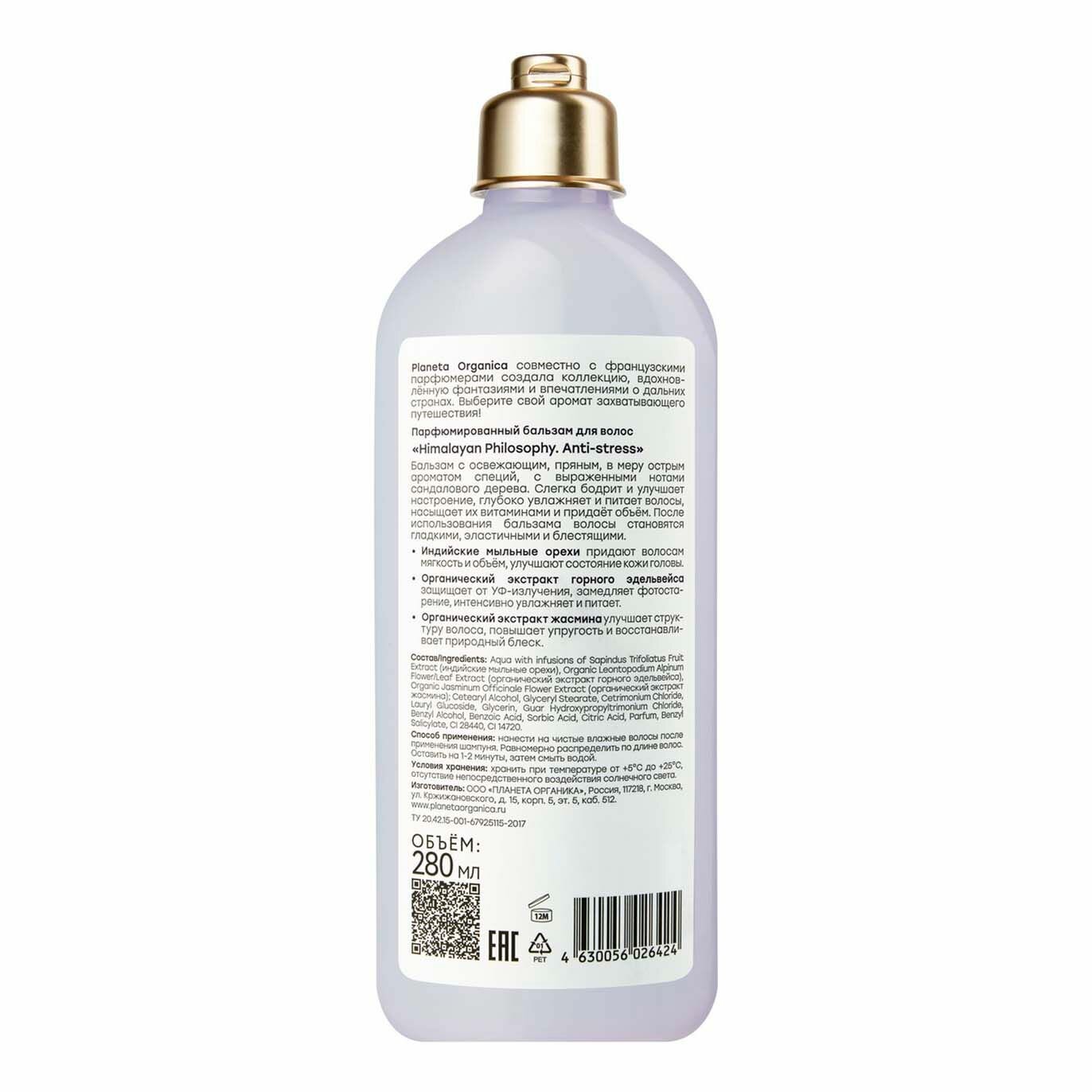 Planeta Organica Himalayan Philosophy Anti-stress Бальзам для объема волос парфюмированный, увлажняющий питательный кондиционер ополаскиватель 280 мл