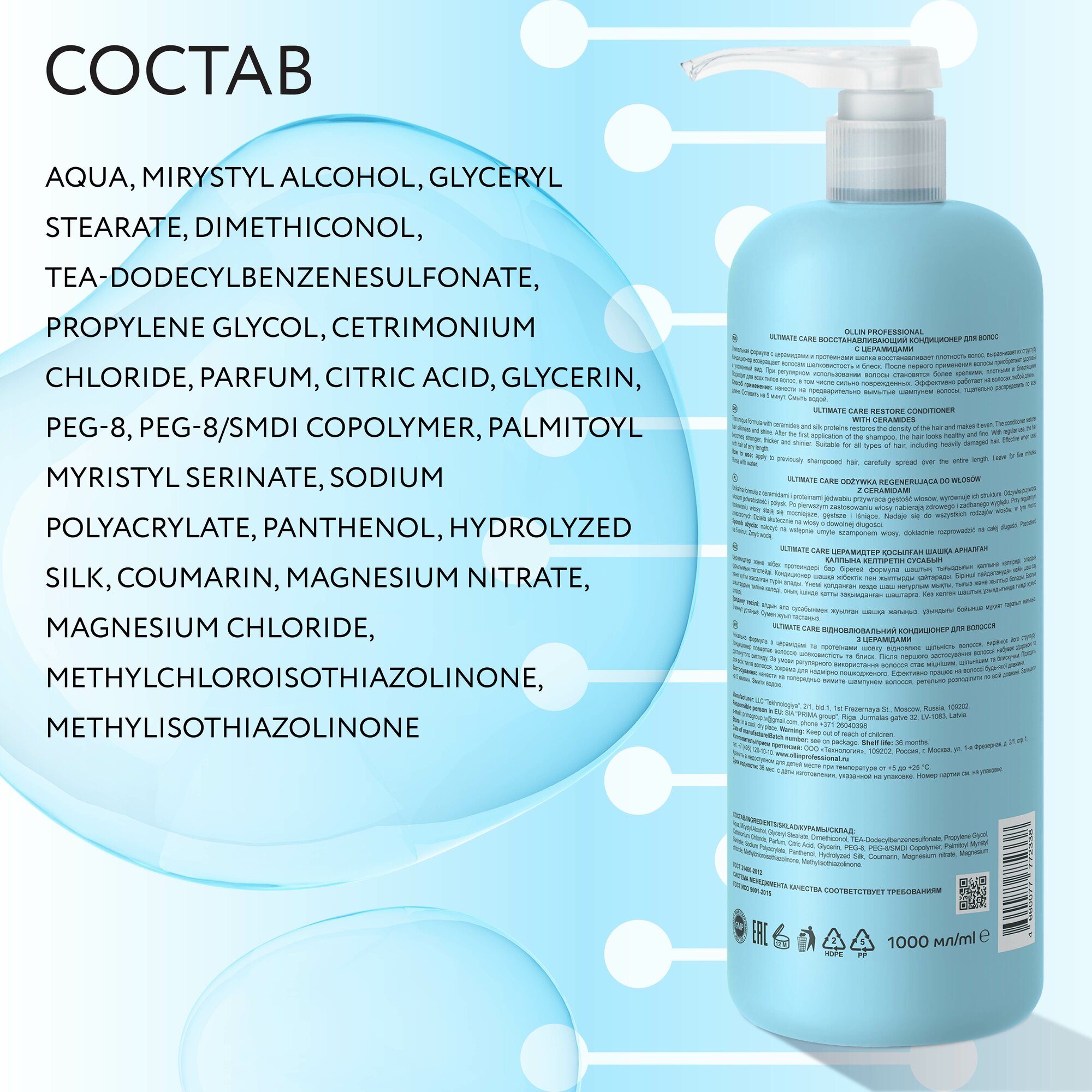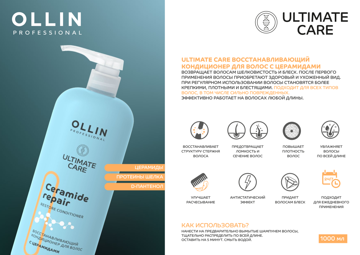 ULTIMATE CARE Восстанавливающий кондиционер для волос с церамидами 1000мл OLLIN PROFESSIONAL