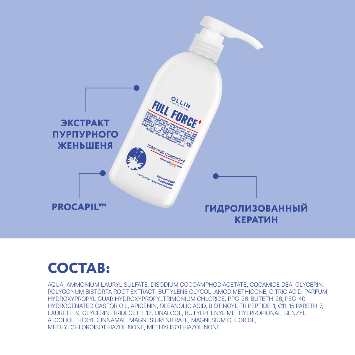 Кондиционер FULL FORCE для восстановления волос OLLIN PROFESSIONAL тонизирующий с экстрактом пурпурного женьшеня 300 мл