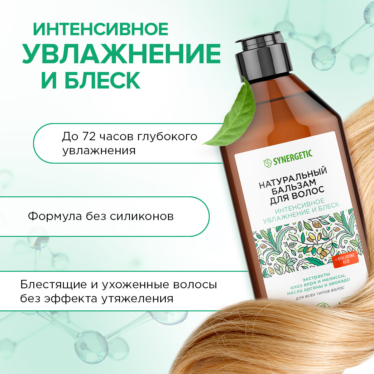 СохранитьНатуральный бальзам для волос SYNERGETIC Интенсивное увлажнение и блеск,400мл интересное: