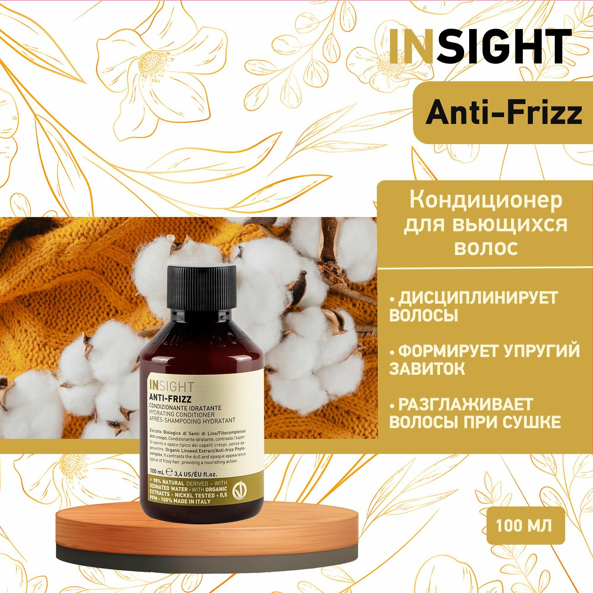 Кондиционер для дисциплины непослушных и вьющихся волос Insight Professional ANTI-FRIZZ с экстрактом семян льна, 100 мл