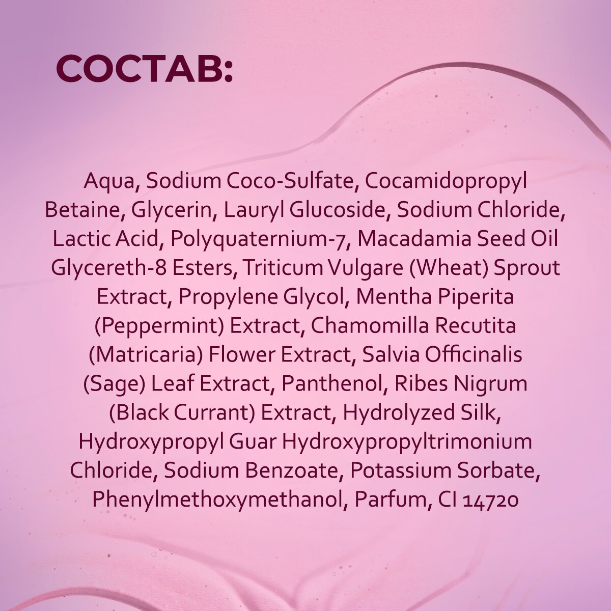 | Эффект | активация роста / восстановление / глубокая очистка / облегчение расчесывания / очищение / питание / придание блеска / придание объема / придание эластичности / против выпадения / против перхоти / против секущихся кончиков / увлажнение / укрепление / уплотнение волос |