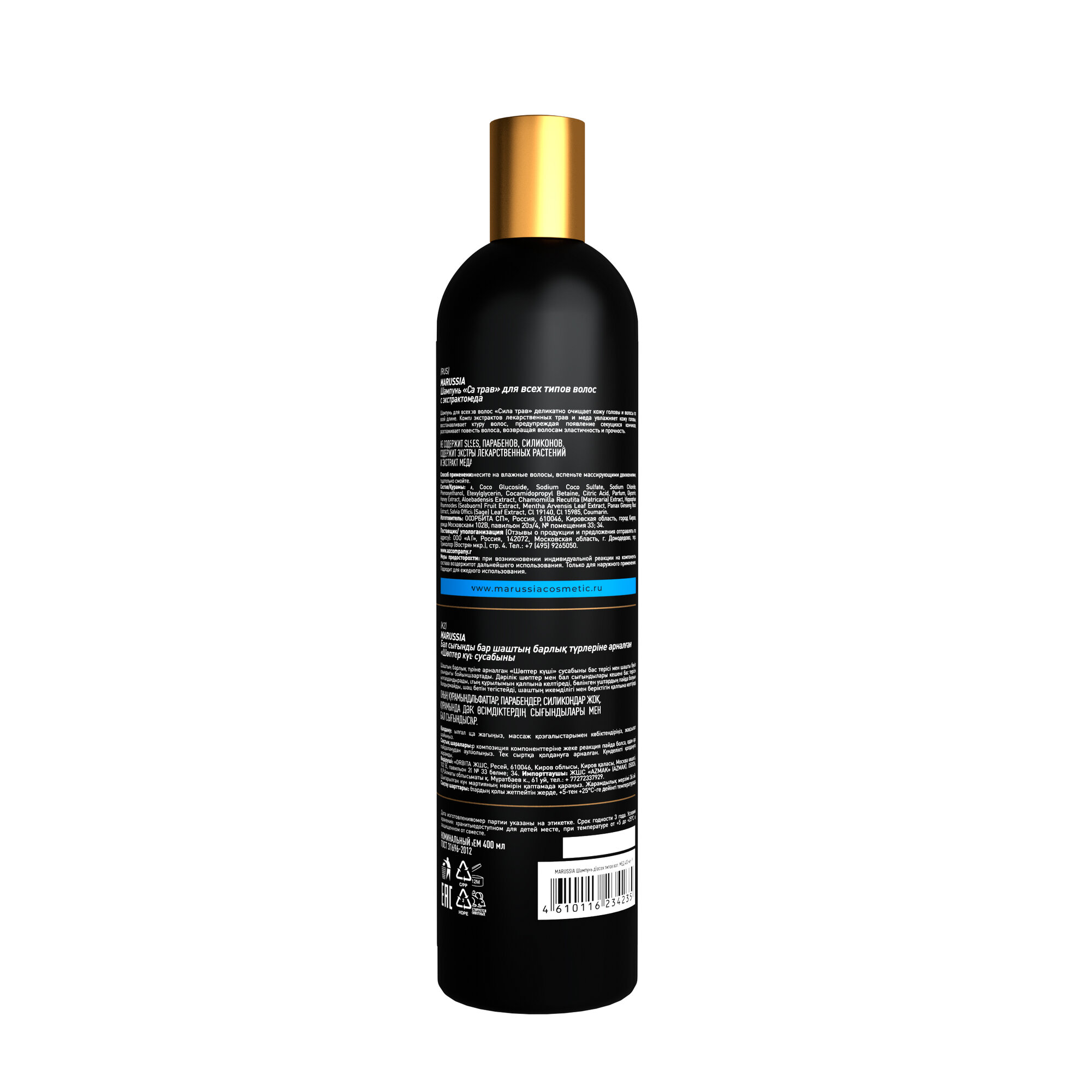 СохранитьMarussia Шампунь для волос женский мужской, «Сила трав» для всех типов, с экстрактом меда, 400 мл интересное: