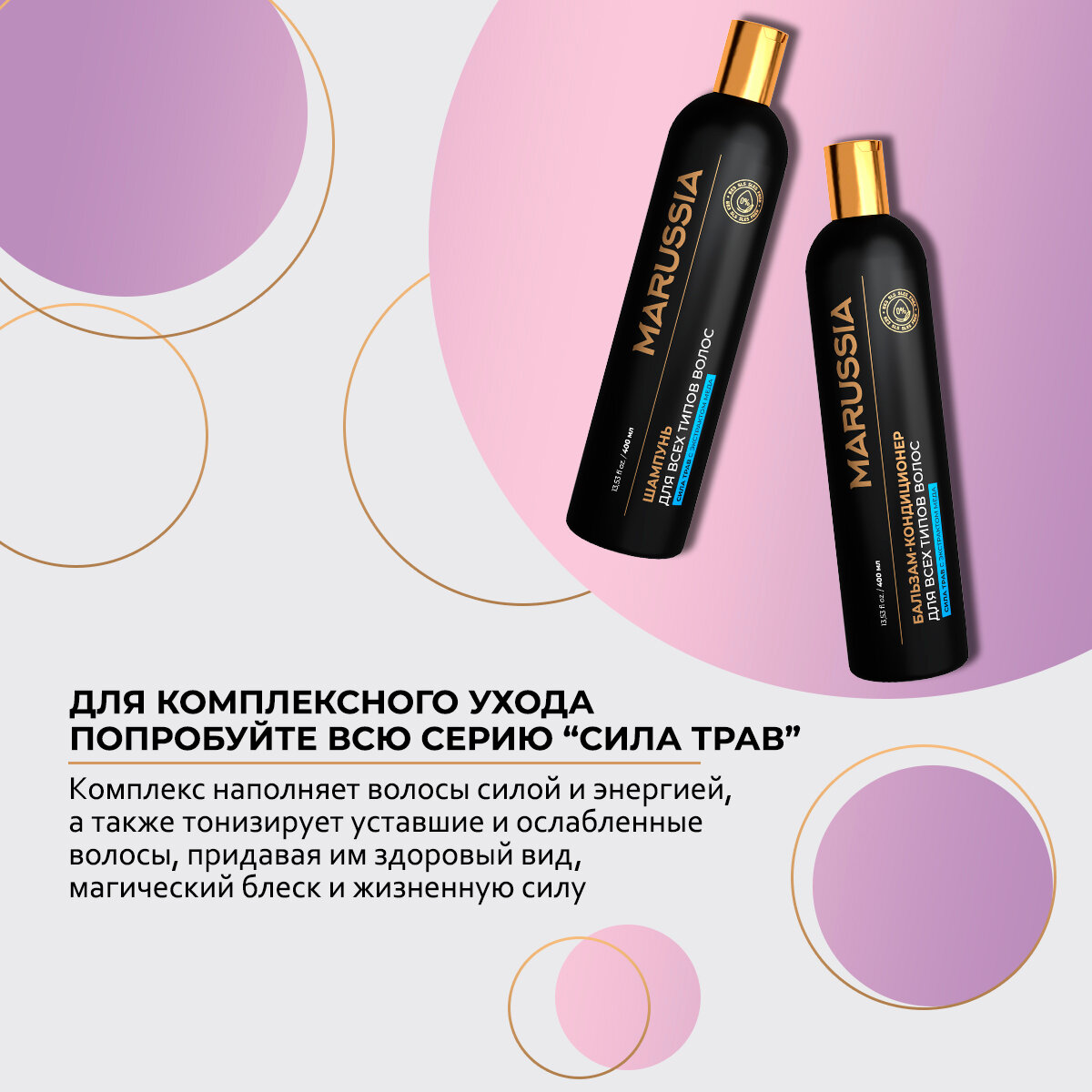 Купить Marussia Шампунь для волос женский мужской, «Сила трав» для всех типов, с экстрактом меда, 400 мл