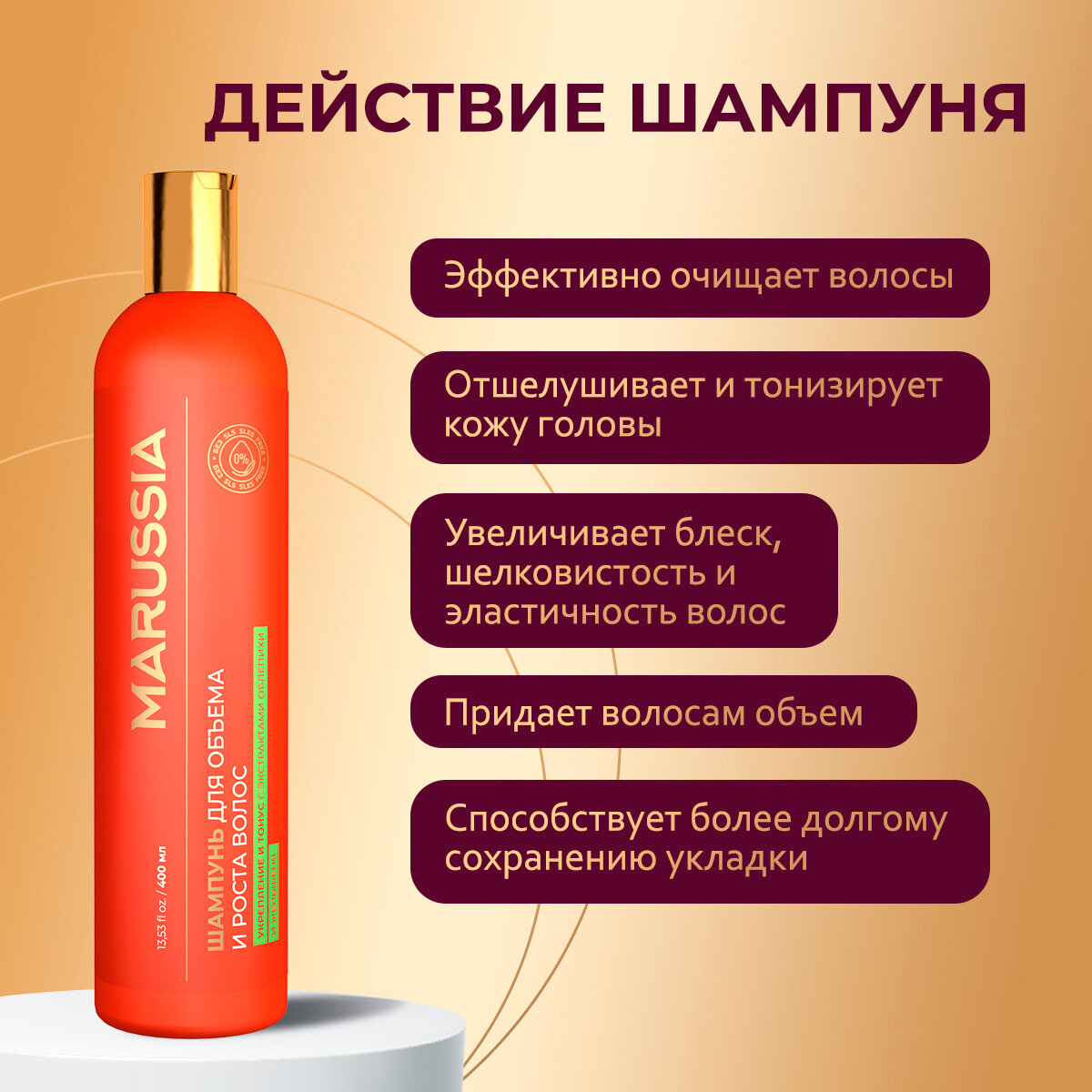 Marussia Шампунь для нормальных волос женский мужской, «Объем 48 часов», с экстрактом меда, 400 мл