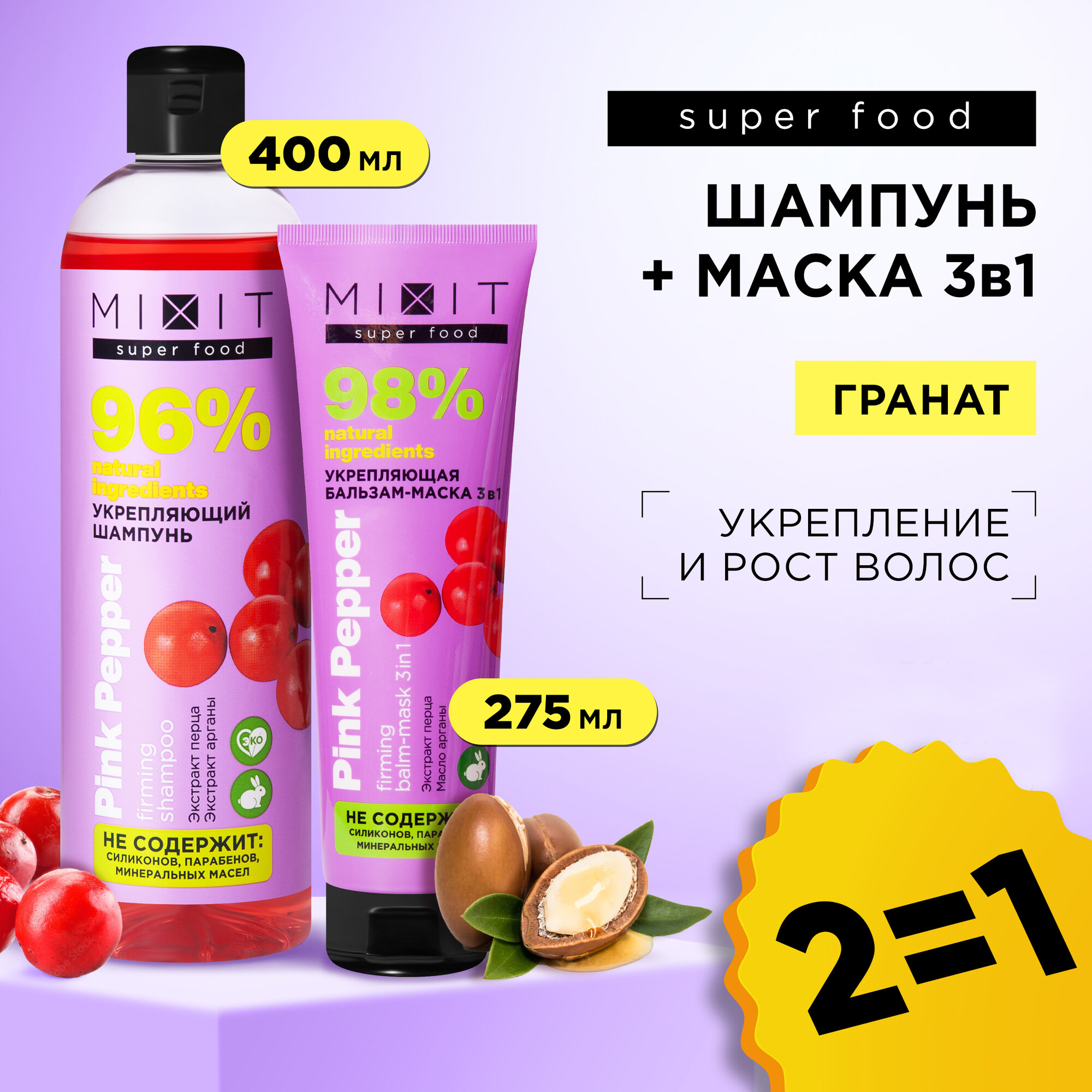Купить MIXIT Набор для ухода за волосами: укрепляющий шампунь и бальзам- маска для волос против выпадения.