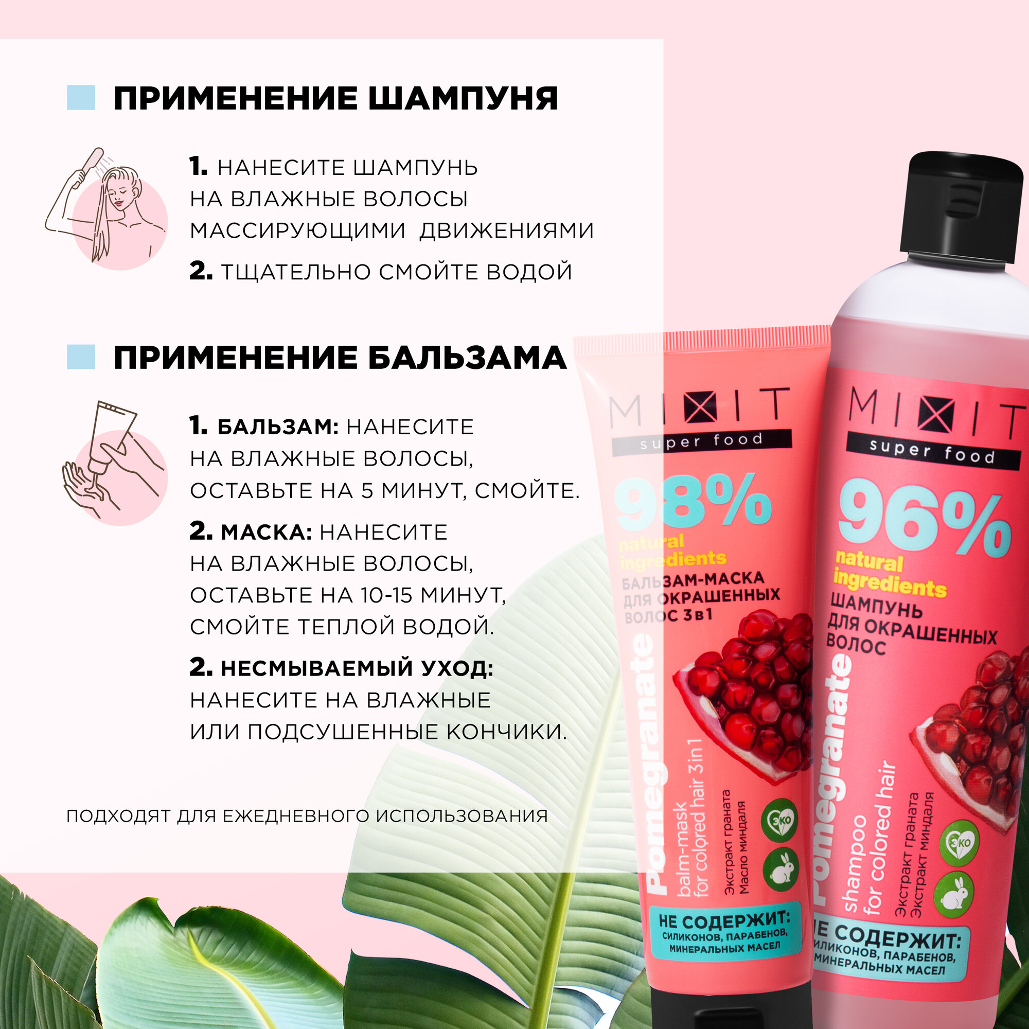 MIXIT Набор для волос: очищающий шампунь и бальзам - маска для окрашенных волос. интересное: