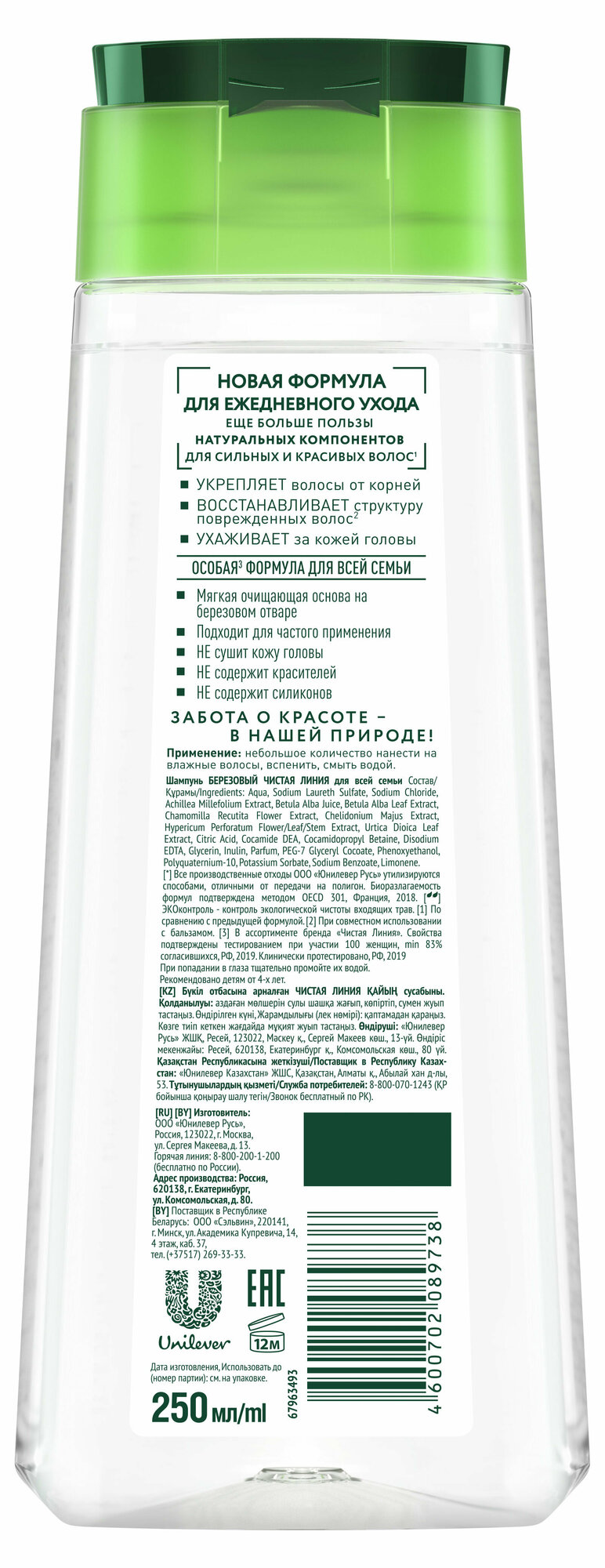 Шампунь для волос чистая линия 400мл Березовый для всей семьи