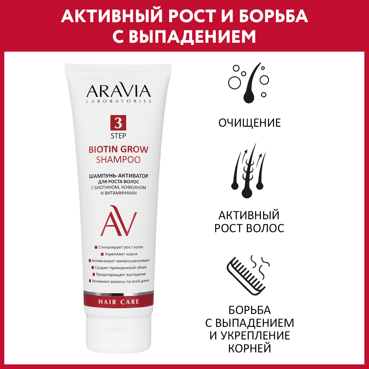 ARAVIA Шампунь-активатор для роста волос с биотином, кофеином и витаминами Biotin Grow Shampoo, 250 мл интересное: