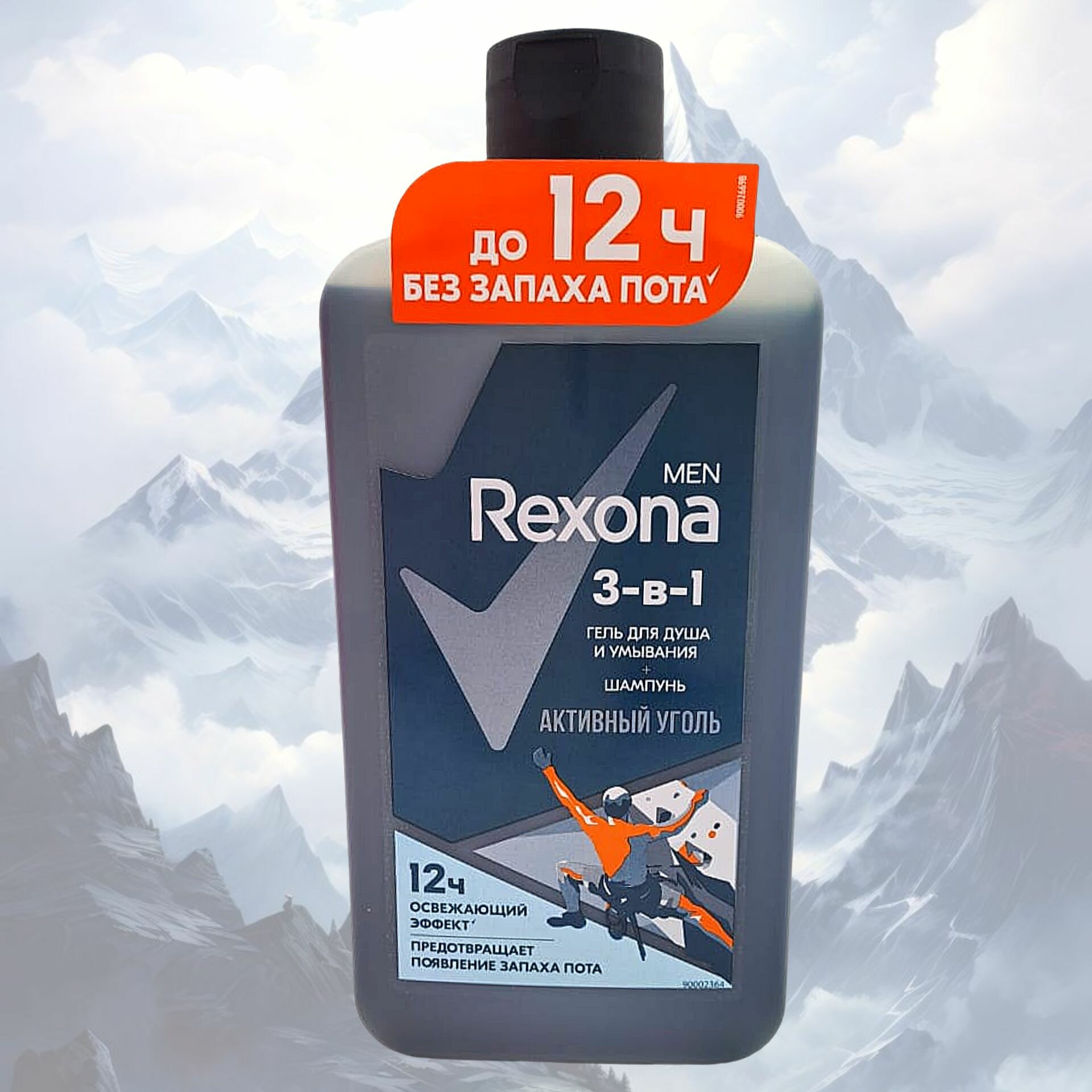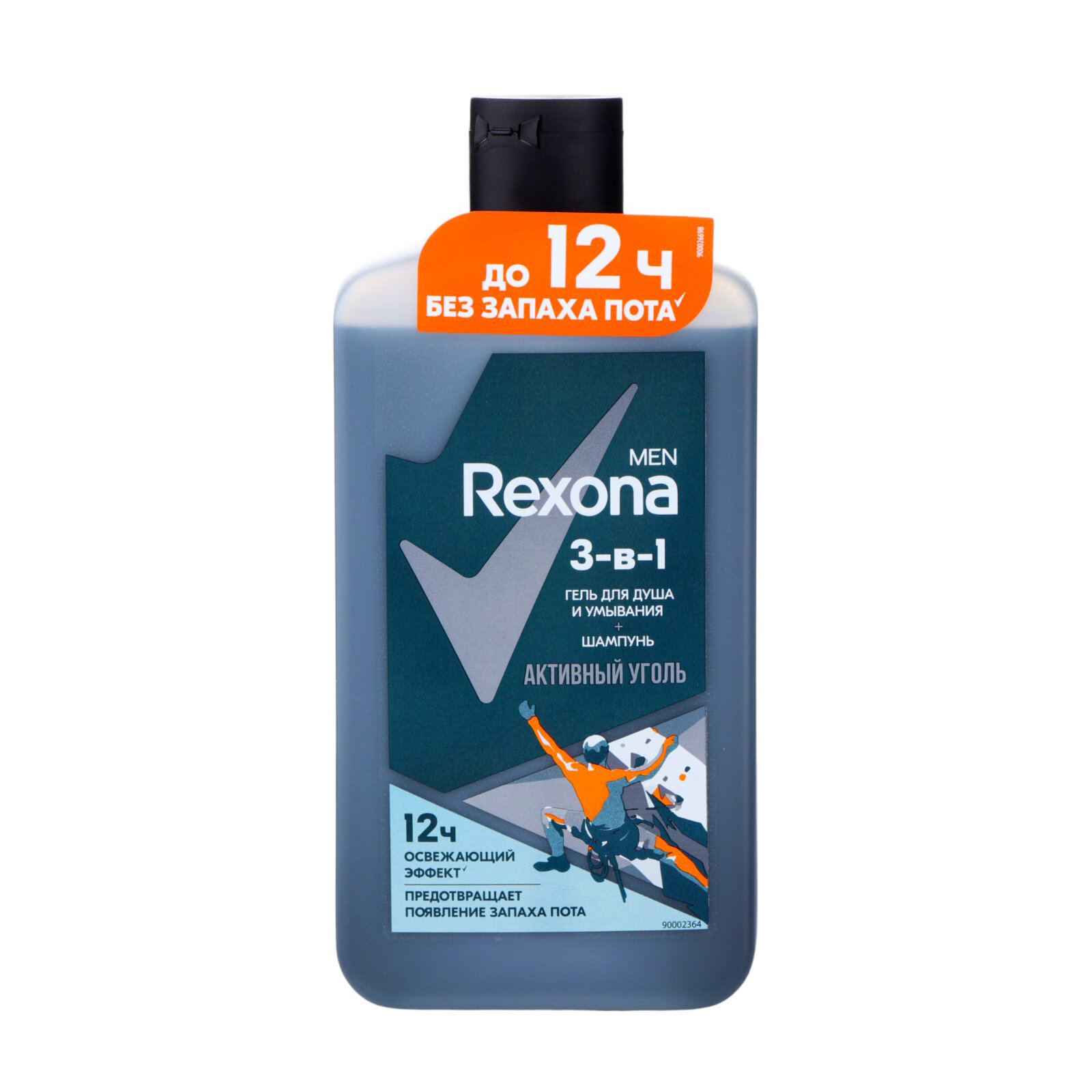 Купить Rexona Men гель для душа, умывания и шампунь 3 в 1 активный уголь 490 мл
