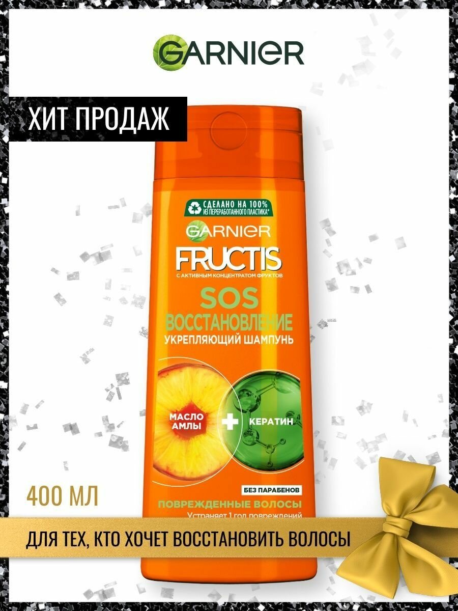 Купить Fructis Шампунь для волос SOS Восстановление, укрепляющий, для секущихся и очень поврежденных волос, с Керафилом и Маслом Амлы, 400 мл