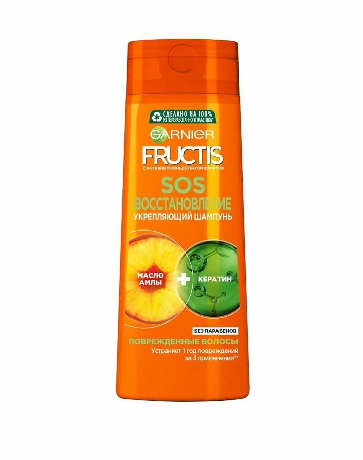 Fructis Шампунь для волос SOS Восстановление, укрепляющий, для секущихся и очень поврежденных волос, с Керафилом и Маслом Амлы, 400 мл