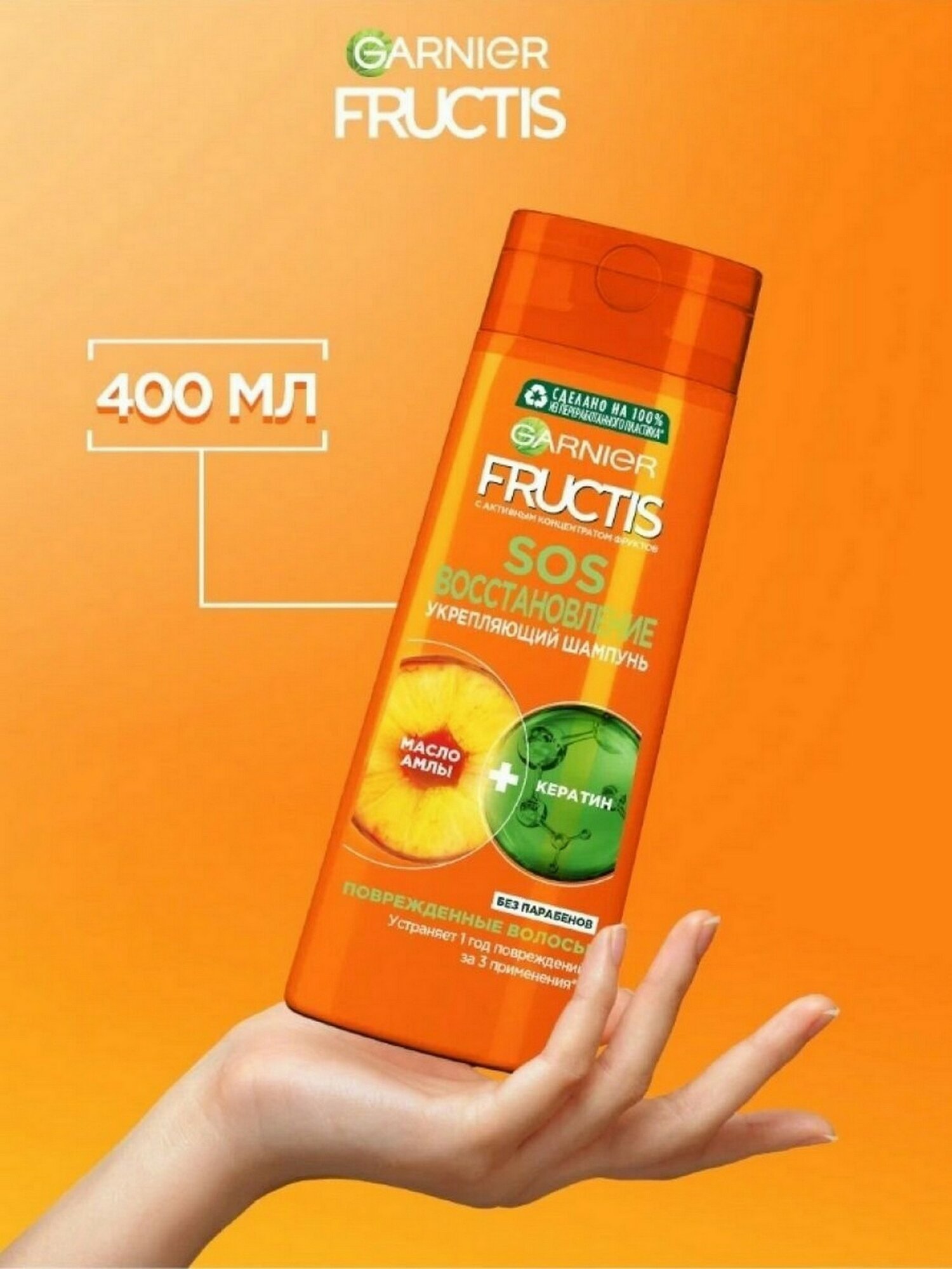 Fructis Шампунь для волос SOS Восстановление, укрепляющий, для секущихся и очень поврежденных волос, с Керафилом и Маслом Амлы, 400 мл