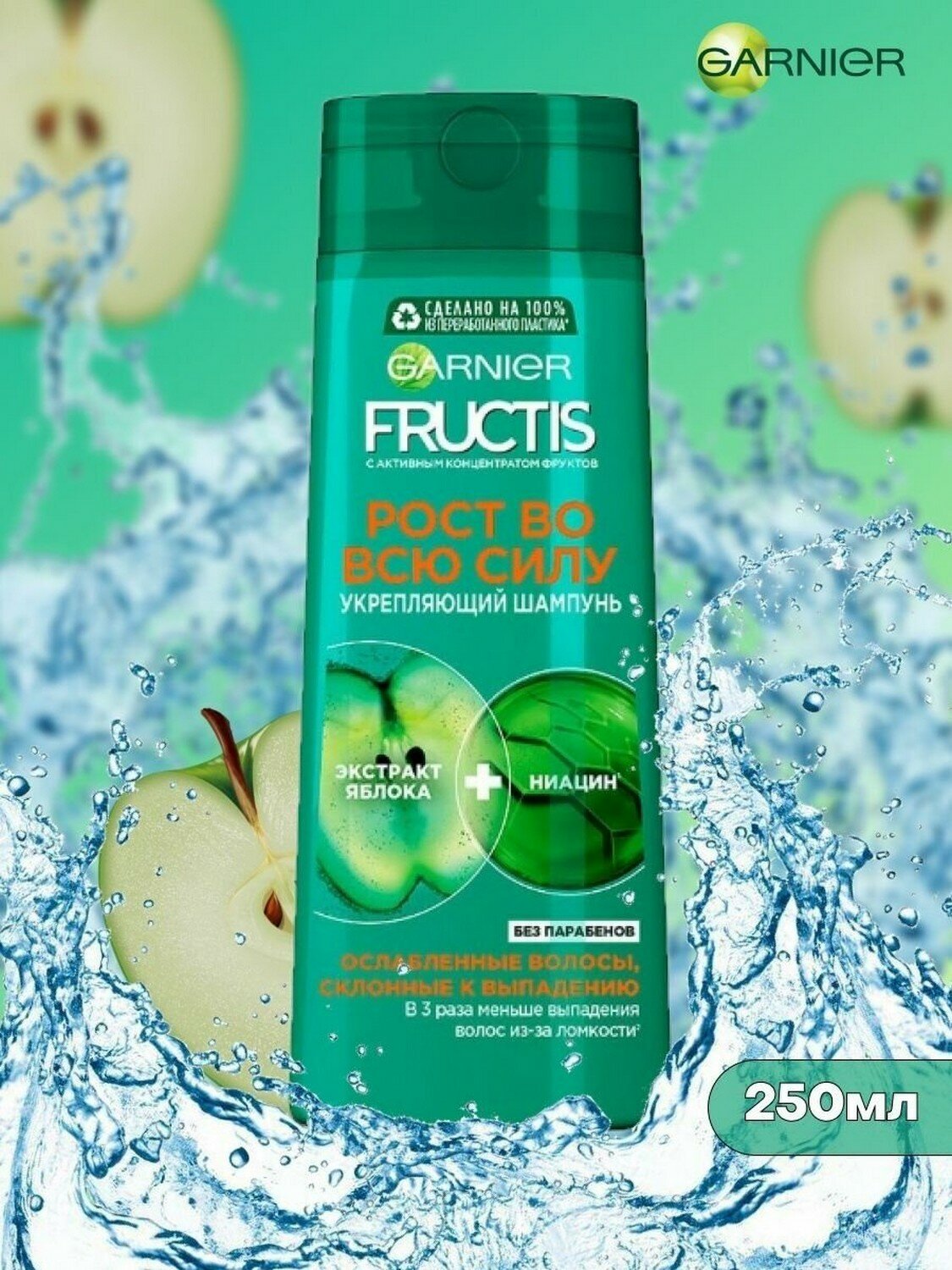 Garnier Fructis Шампунь для волос "Фруктис Рост во всю Силу", укрепляющий, для ослабленных волос, склонных к выпадению, 250 мл