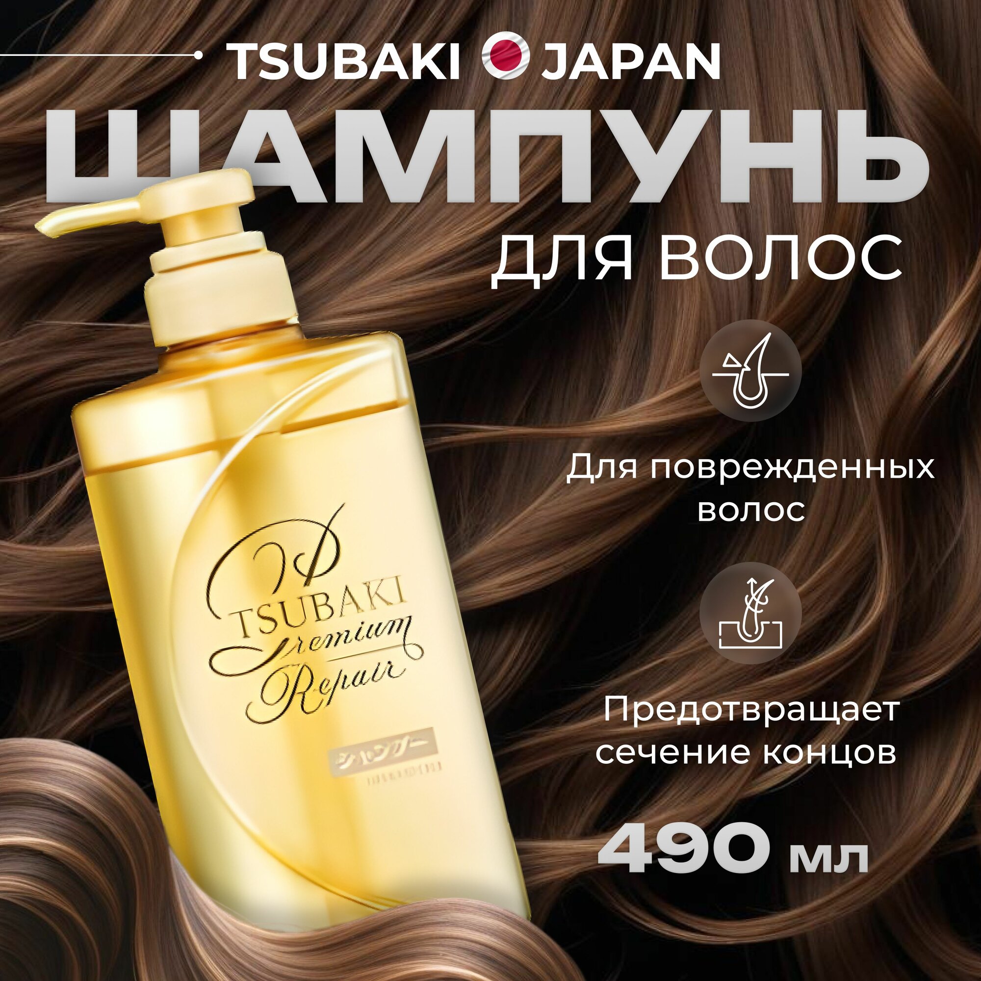 Shiseido Tsubaki Premium Repair Шампунь для поврежденных волос с маслом камелии, 490 мл