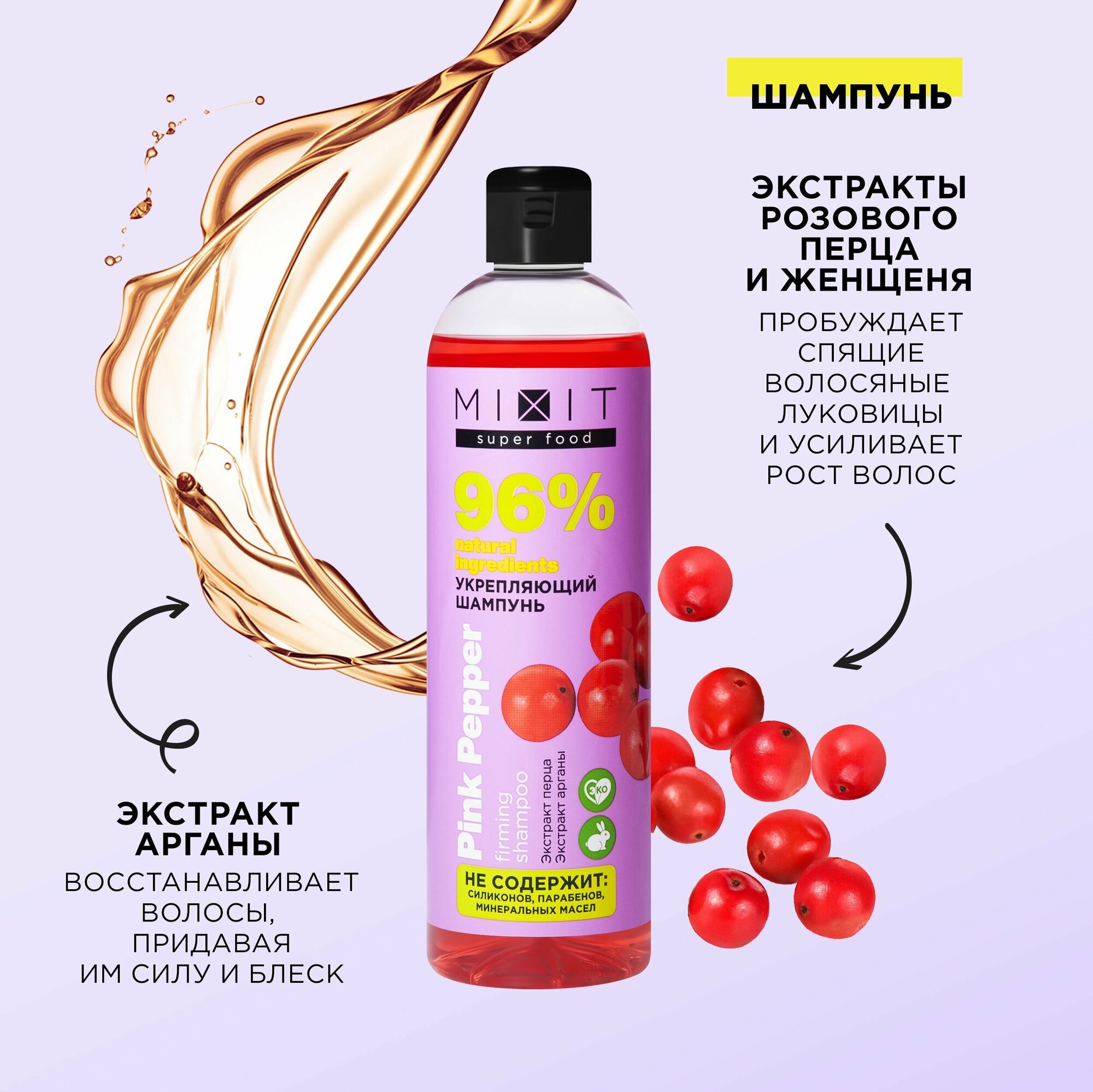 MIXIT Укрепляющий шампунь с экстрактом арганы и перца для активации роста волос SUPER FOOD MixitSF, 400 мл интересное: