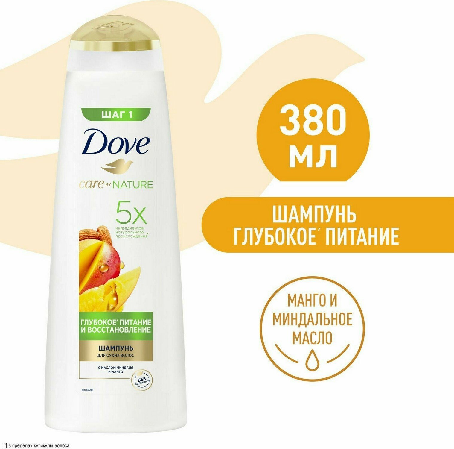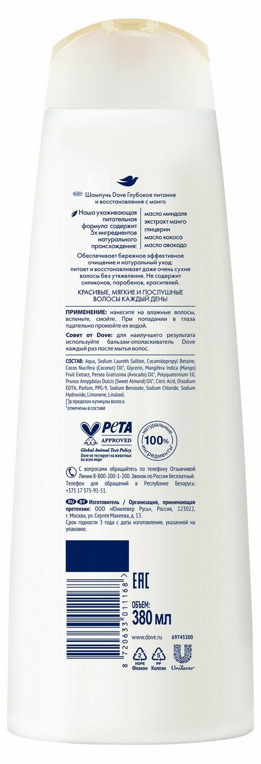 Шампунь Dove Глубокое питание и восстановление с ароматом Манго, 380 мл