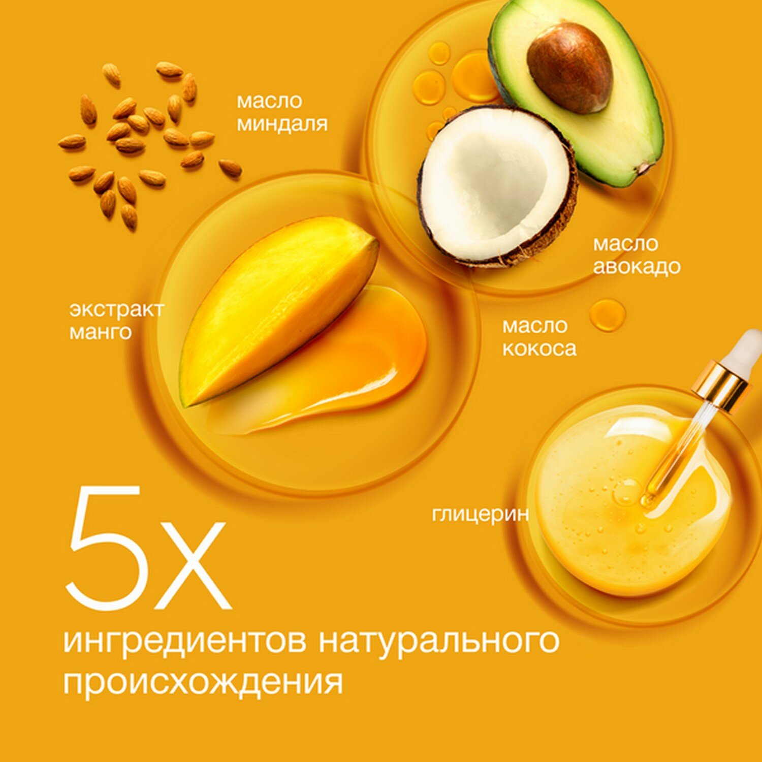 | Масла и экстракты | кокосовое масло / комплекс масел / масло авокадо / миндальное масло / экстракт манго |