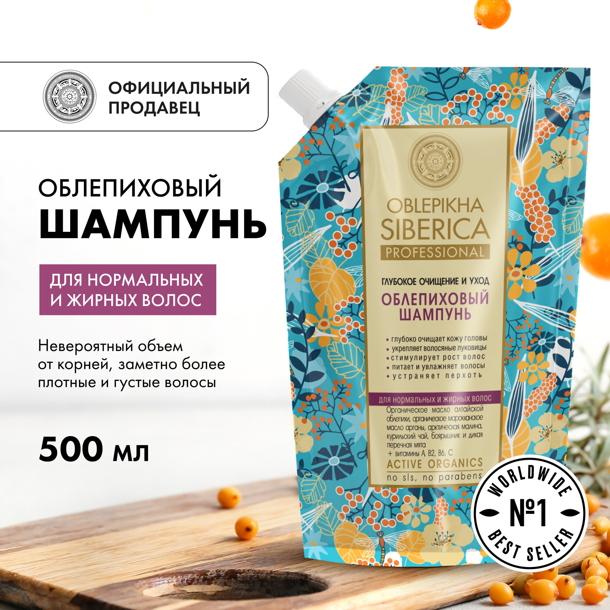 NATURA SIBERICA, OBLEPIKHA, Шампунь для нормальных и жирных волос, глубокое очищение, 400 мл