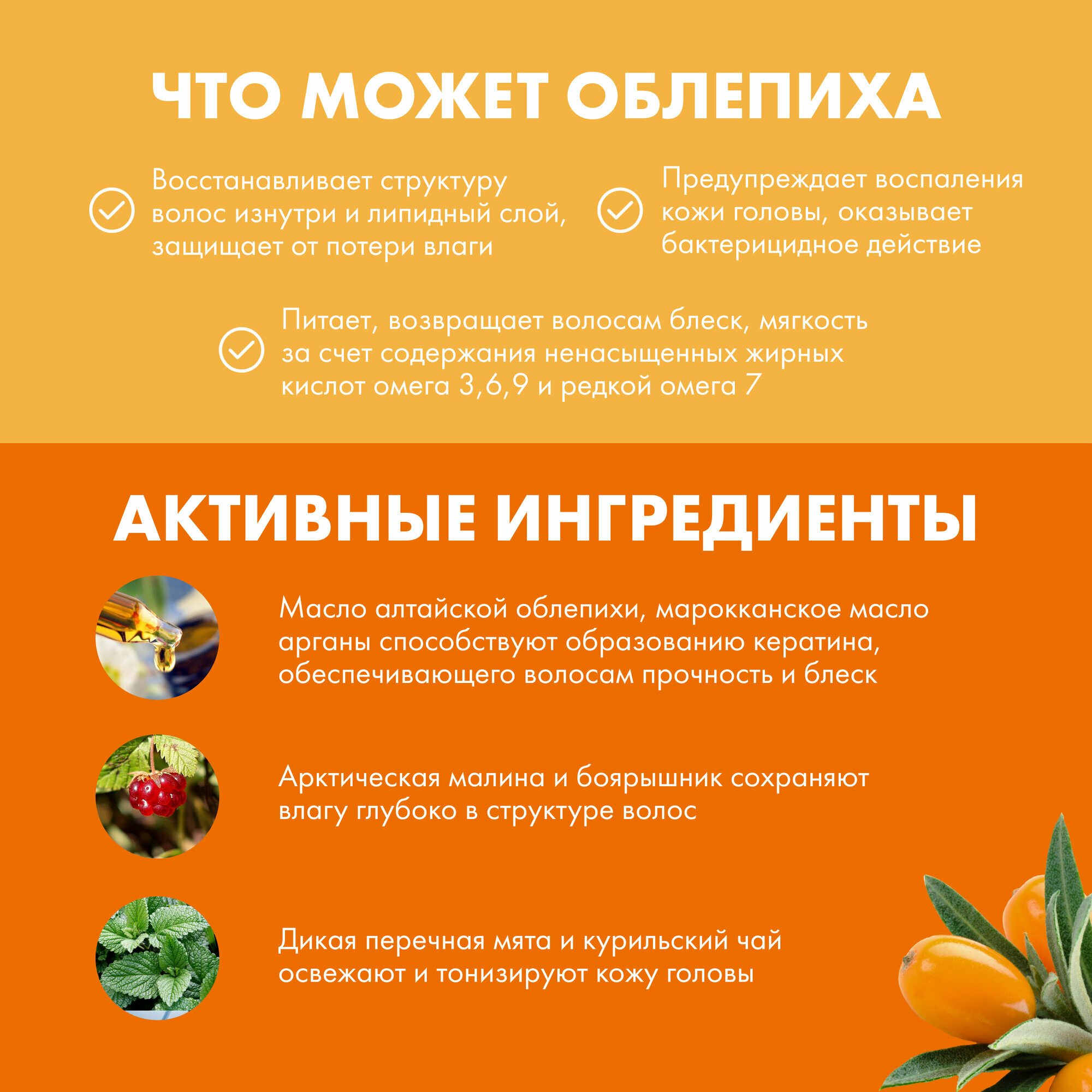 Шампунь облепиховый для всех типов волос 500 мл