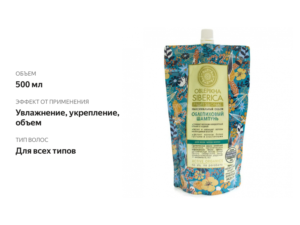 Облепиховый Шампунь для всех типов волос Дой-пак Natura Siberica 500 мл