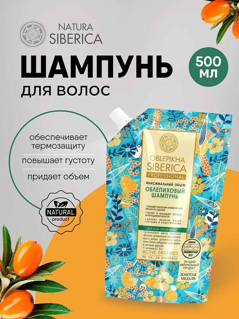Natura Siberica Oblepikha Профессиональный облепиховый шампунь для объема волос уплотняющий, увлажняющий и питательный 500 мл