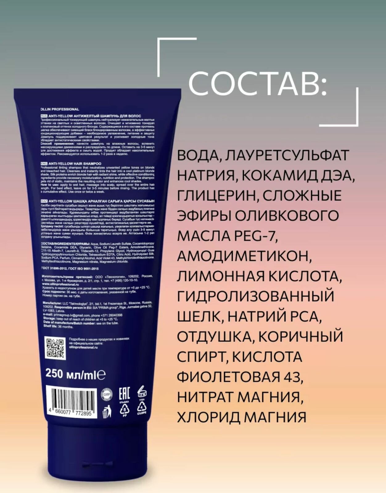 Шампунь для волос OLLIN ANTI-YELLOW тонирующий против желтизны 500 мл