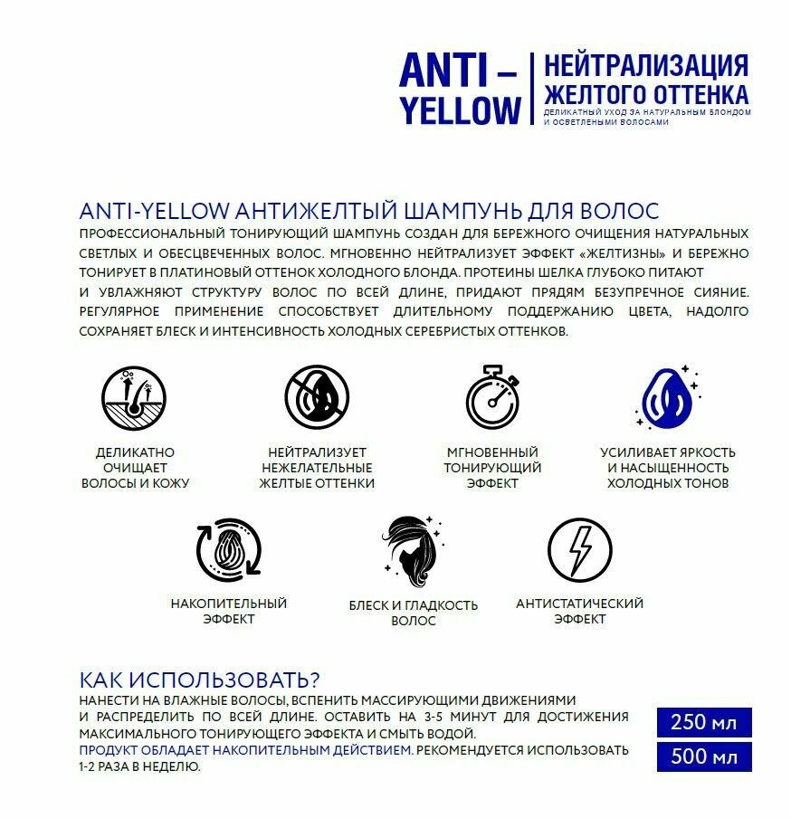 Антижелтый шампунь для волос 500мл