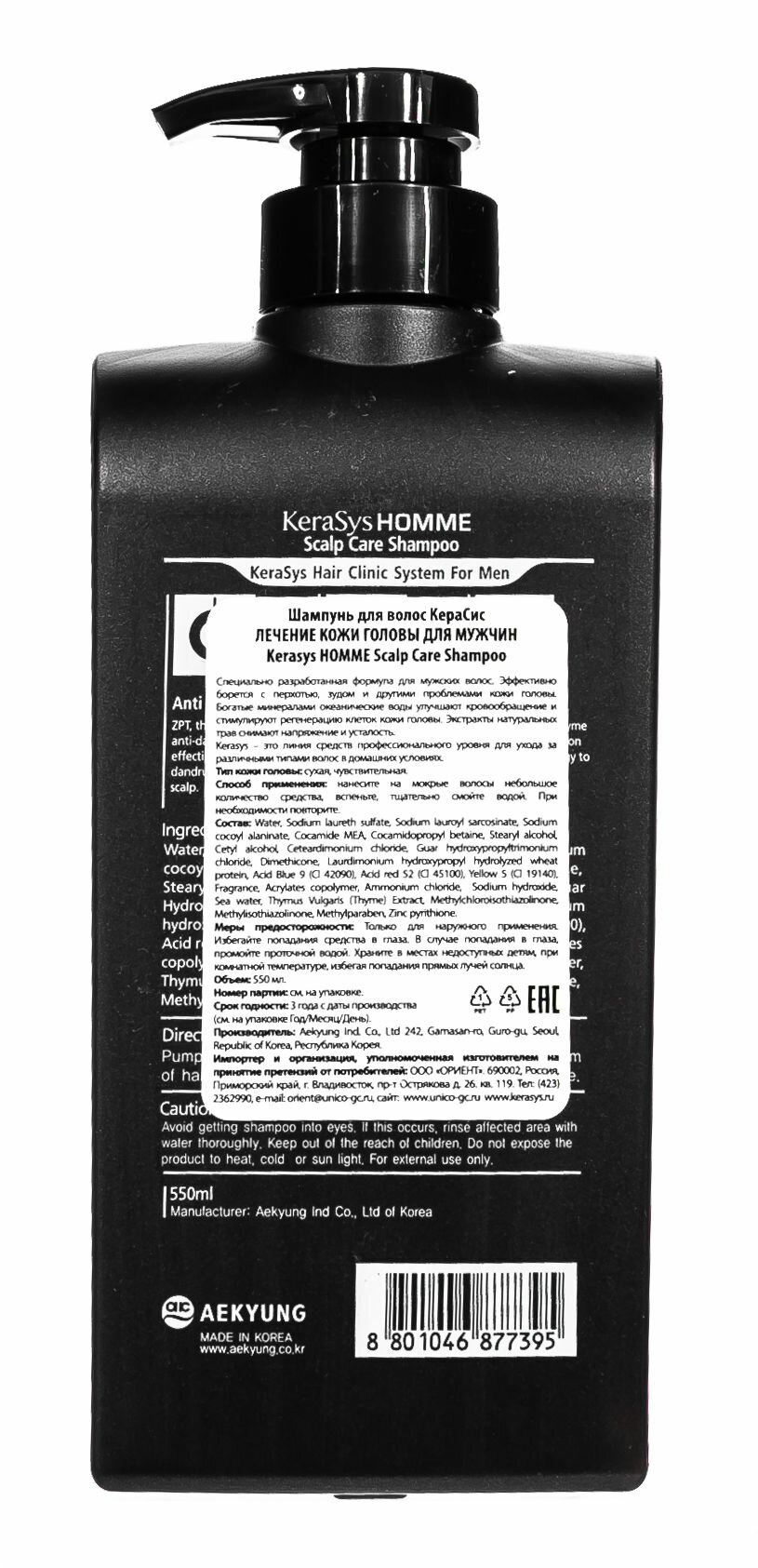 Купить Шампунь Kerasys Шампунь для волос Kerasys Homme Deep Cleansing cool Shampoo мужской освежающий 550 мл