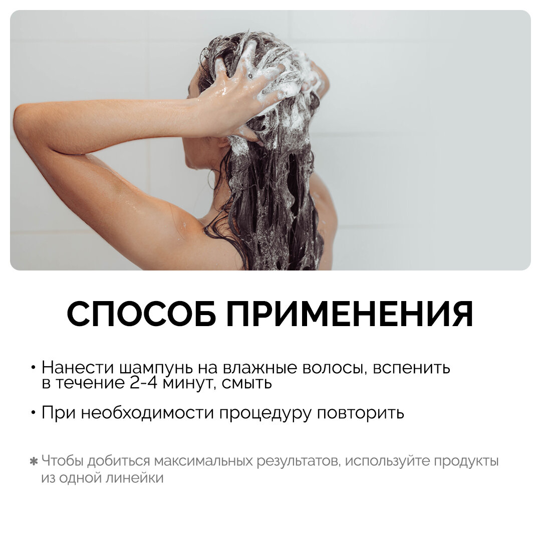 | Способ применения | нанесите небольшое количество шампуня на влажные волосы. Вспеньте, распределяя по всей длине волос в течение 2-4 минут, смойте теплой водой |