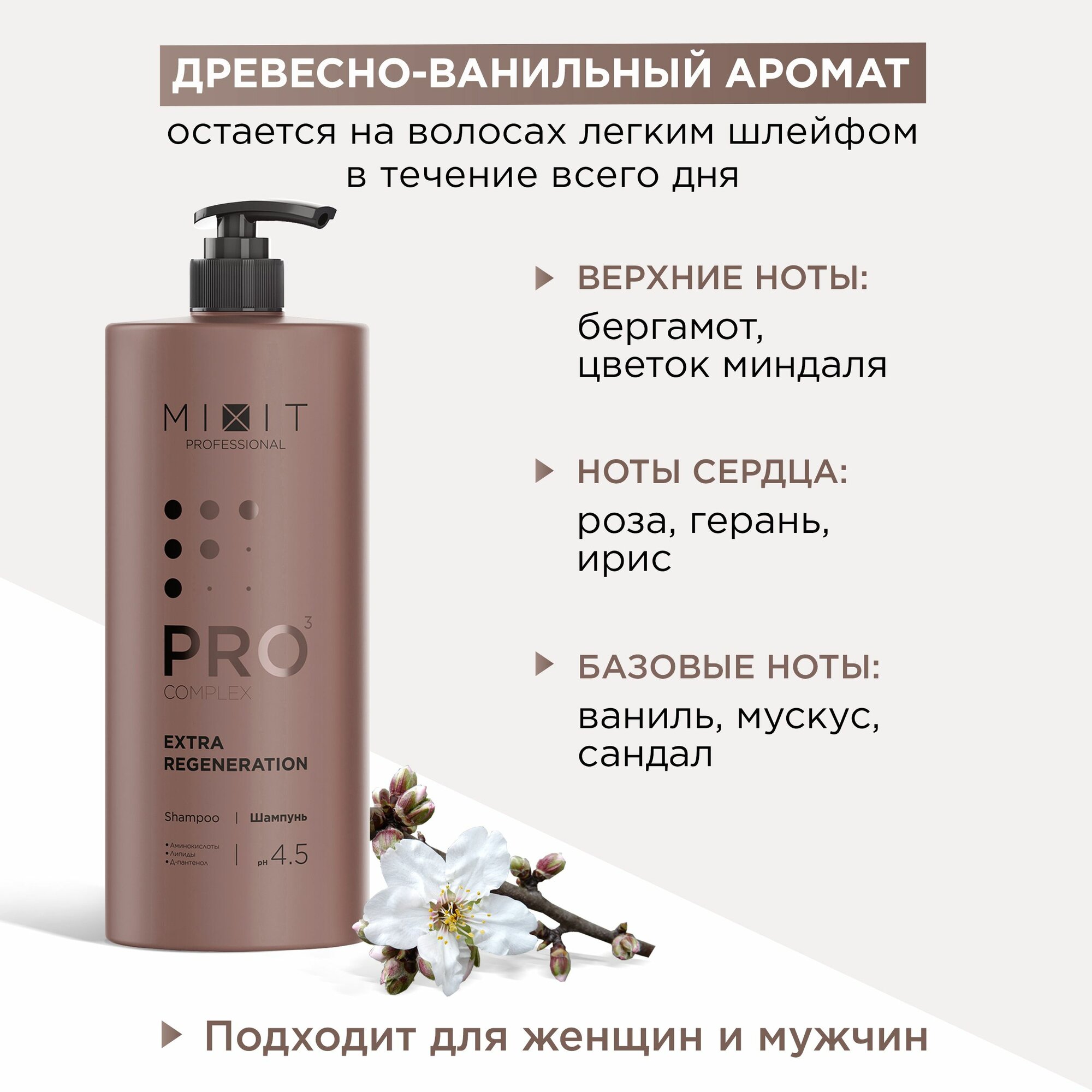 СохранитьПрофессиональный шампунь для волос MIXIT "PRO COMPLEX Extra Regeneration Shampoo", очищающий и увлажняющий уход за волосами и кожей головы, 1000 мл интересное: