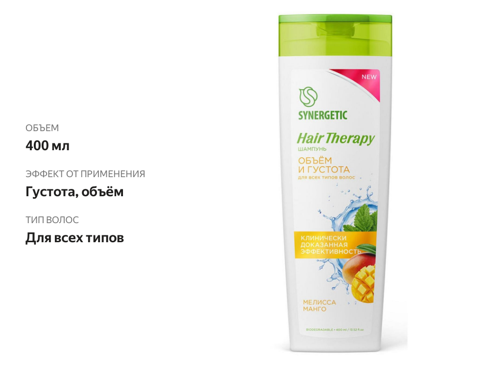 Ниже Вы можете прочитать отзывы на Шампунь для волос Synergetic Hair Therapy обьем и густота 400мл, ознакомится с подробными характеристиками, посмотреть интересные обзоры и фотографии на Шампунь для волос Synergetic Hair Therapy обьем и густота 400мл.
