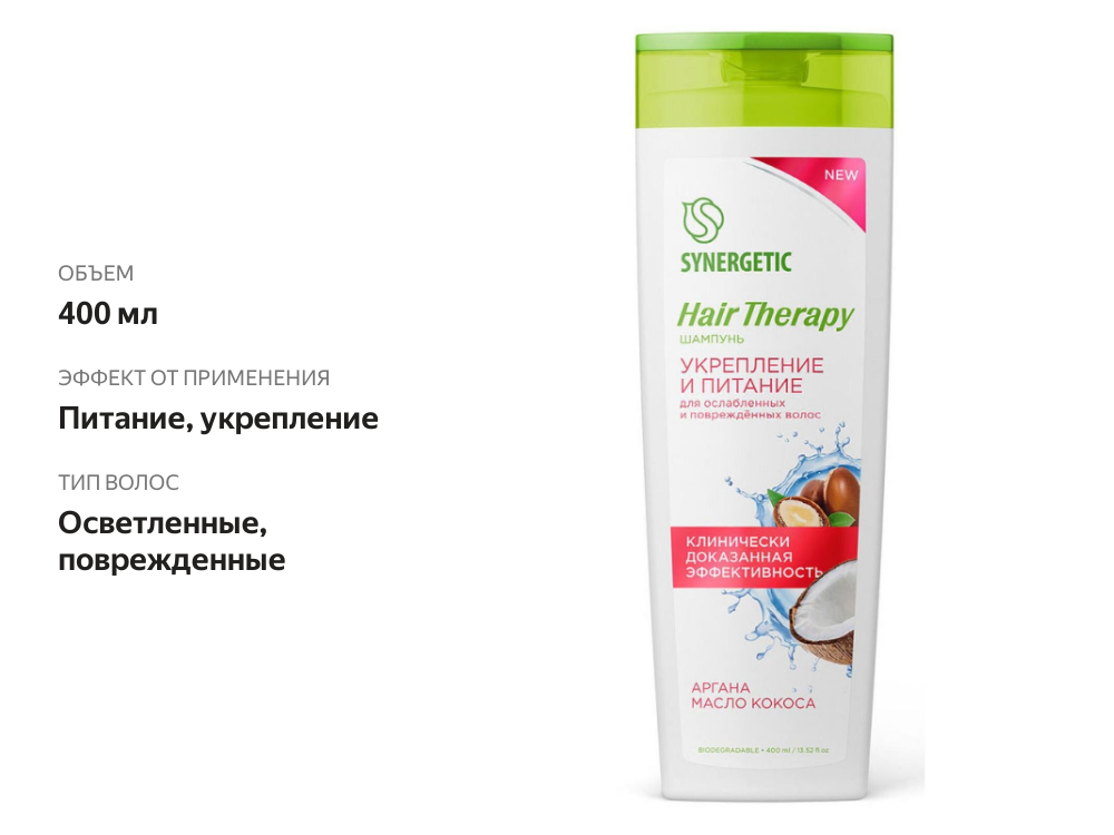СохранитьШампунь для волос Synergetic Hair Therapy Укрепление и питание 400мл интересное: