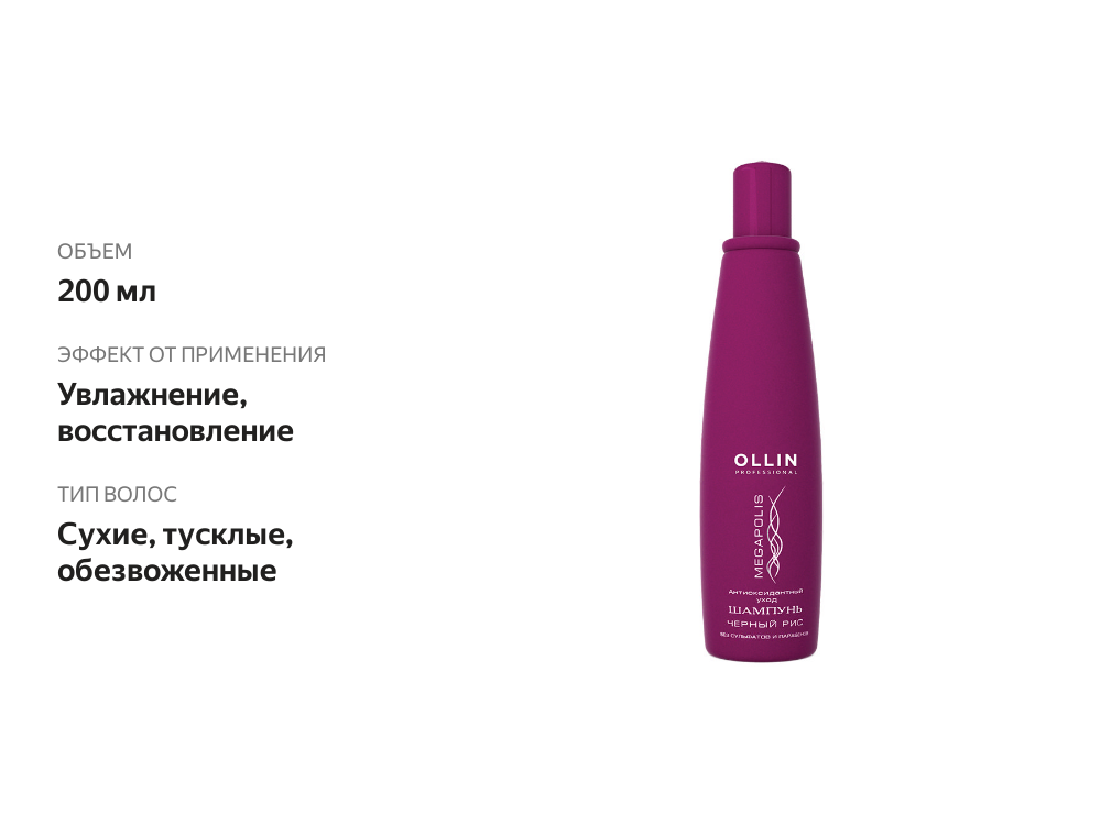 OLLIN / MEGAPOLIS – Шампунь на основе черного риса (без сульфатов и парабенов), 200мл