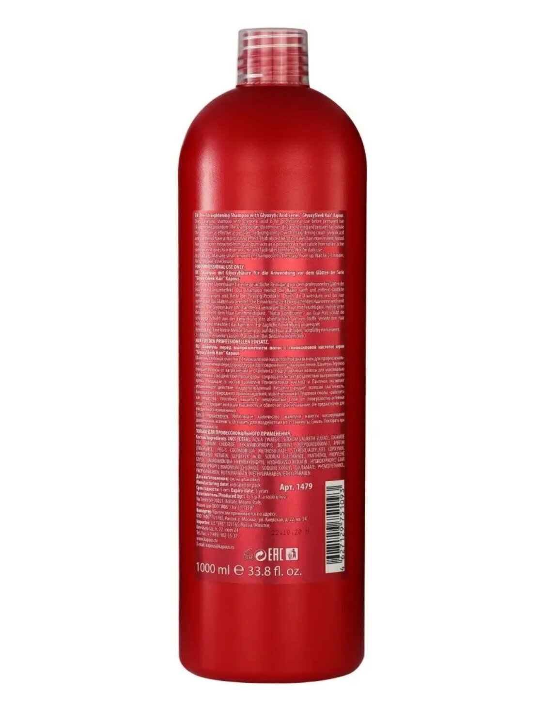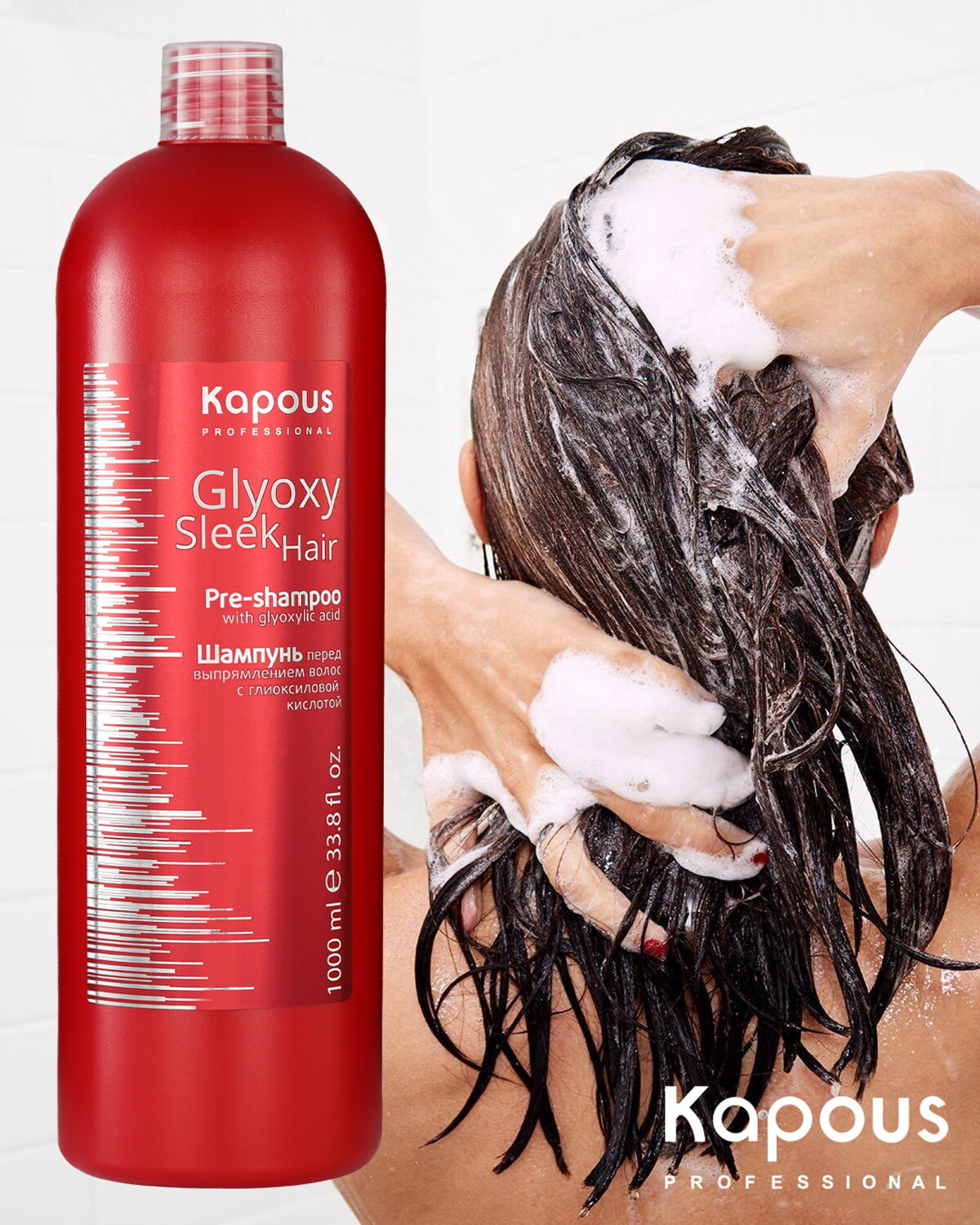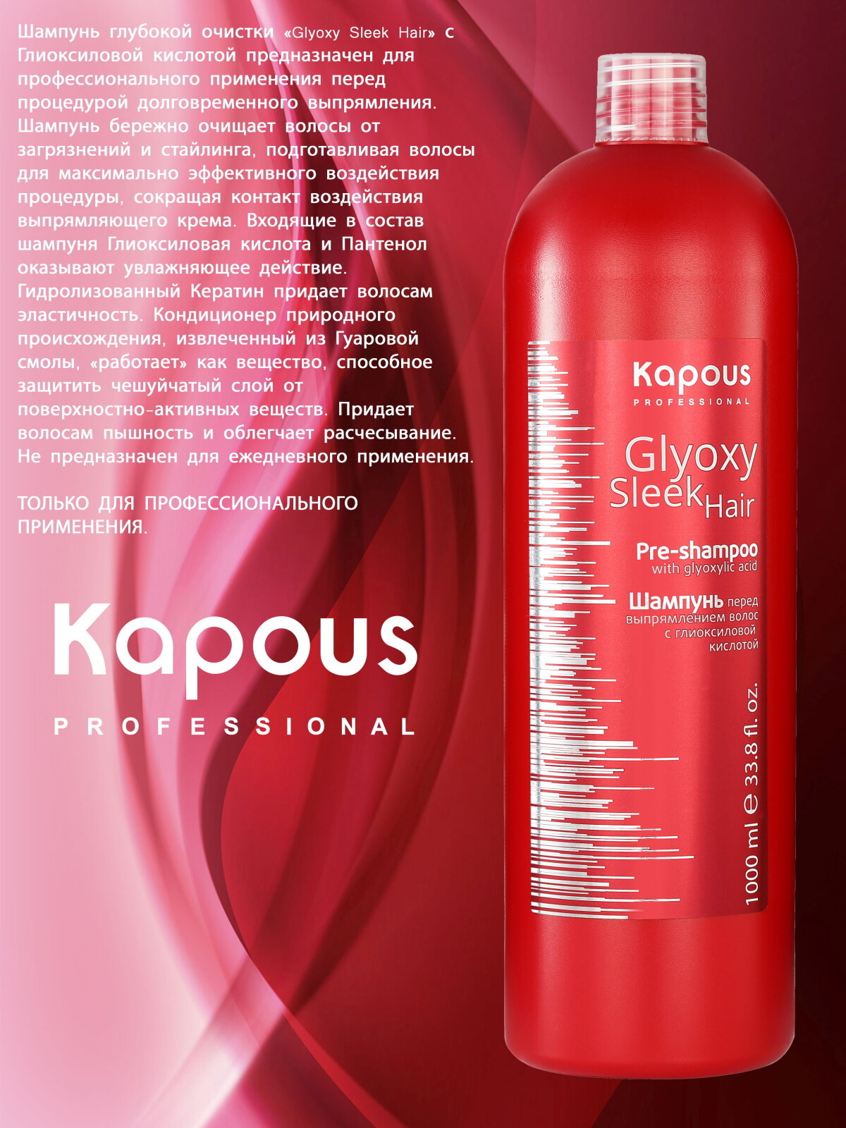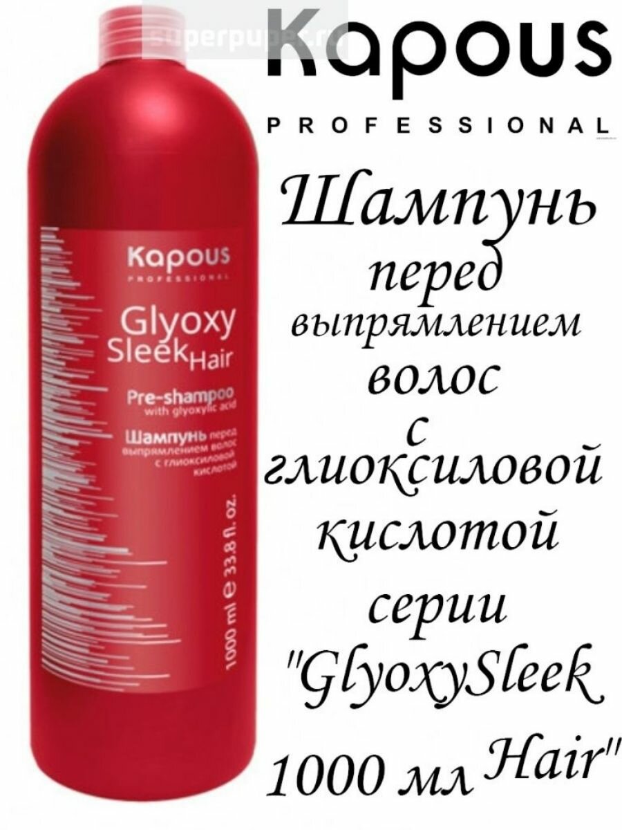 Купить Kapous Professional GlyoxySleek Hair Шампунь перед выпрямлением волос, с глиоксиловой кислотой, 1000 мл