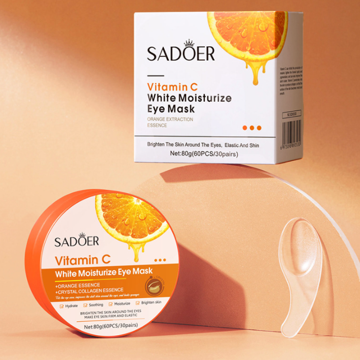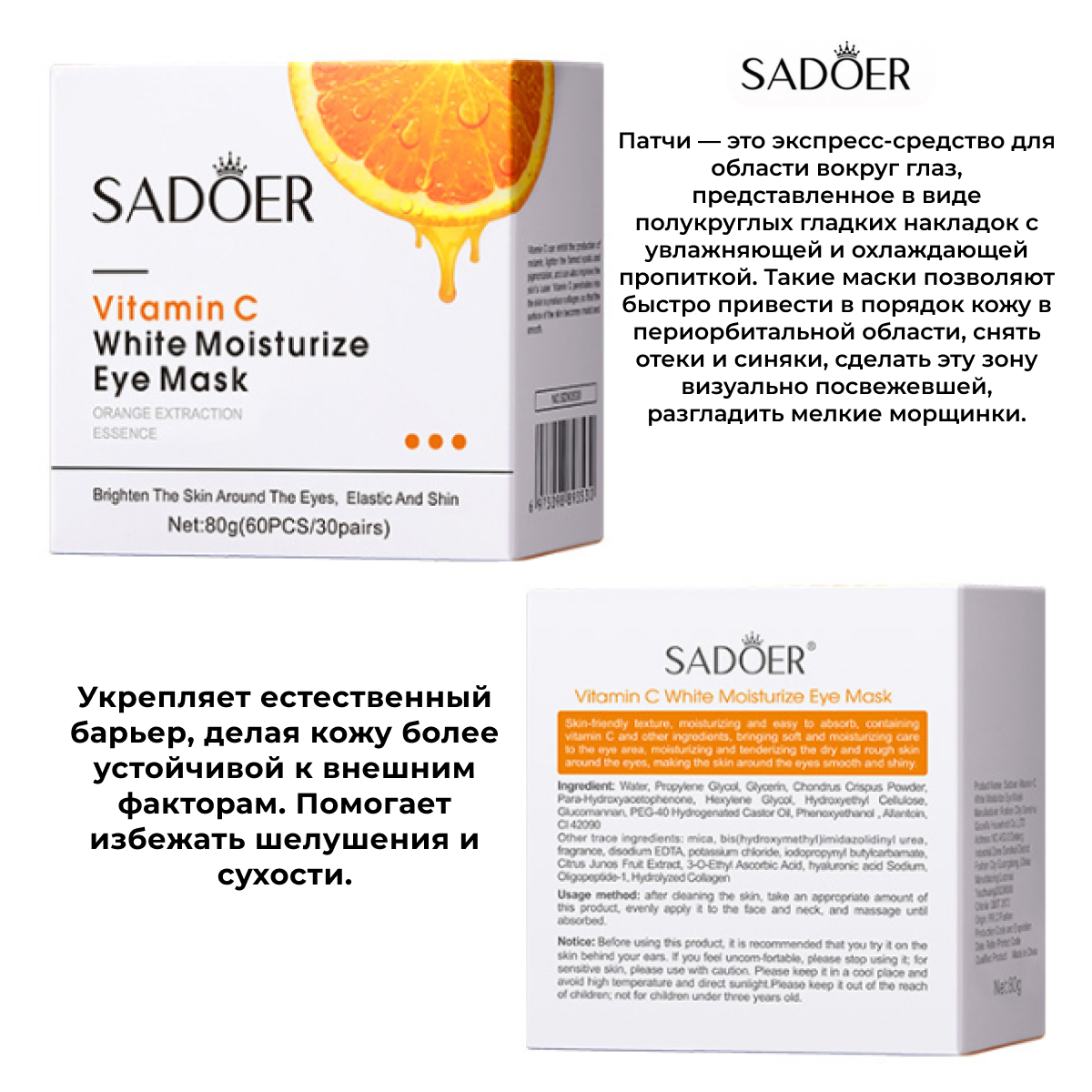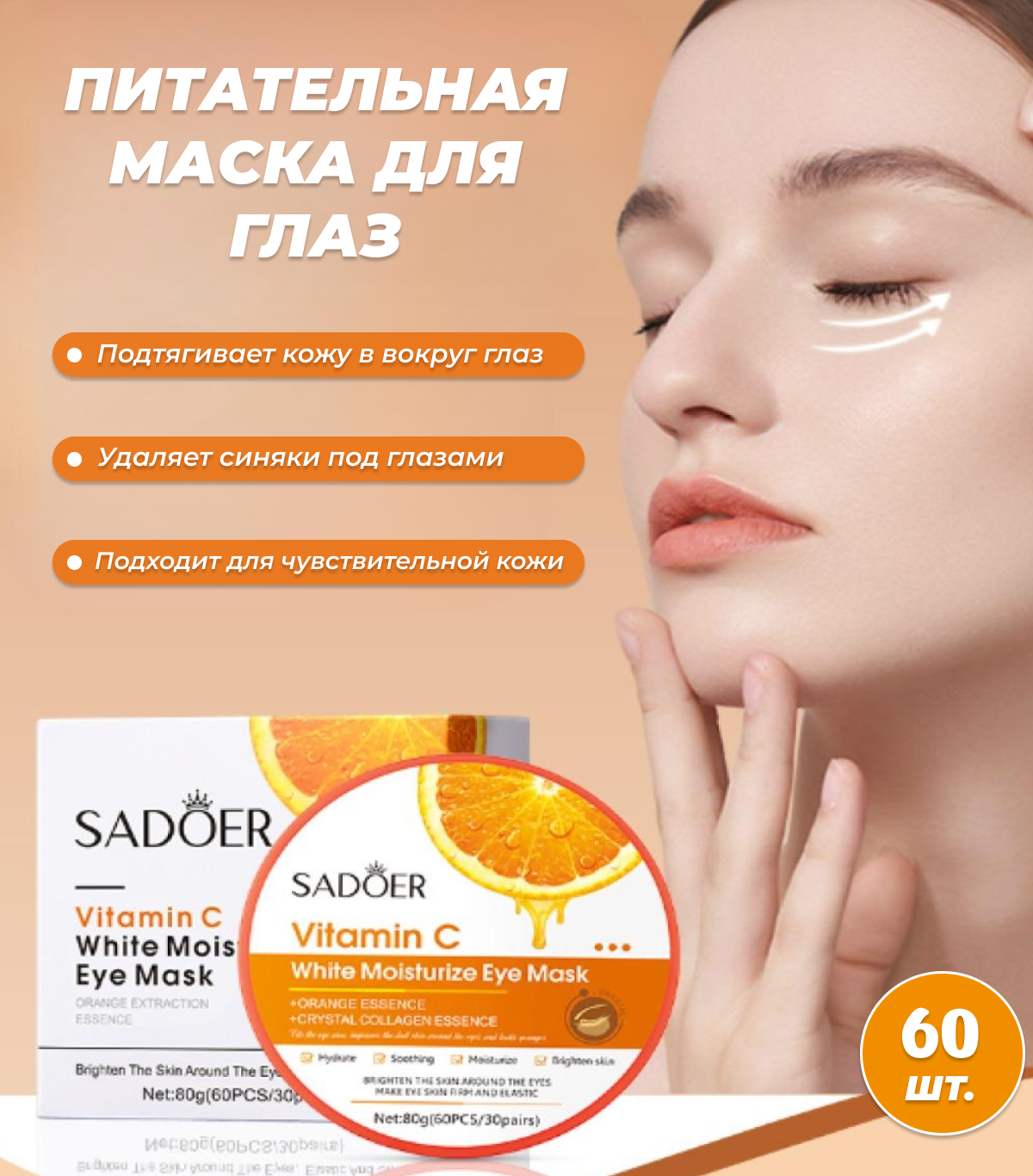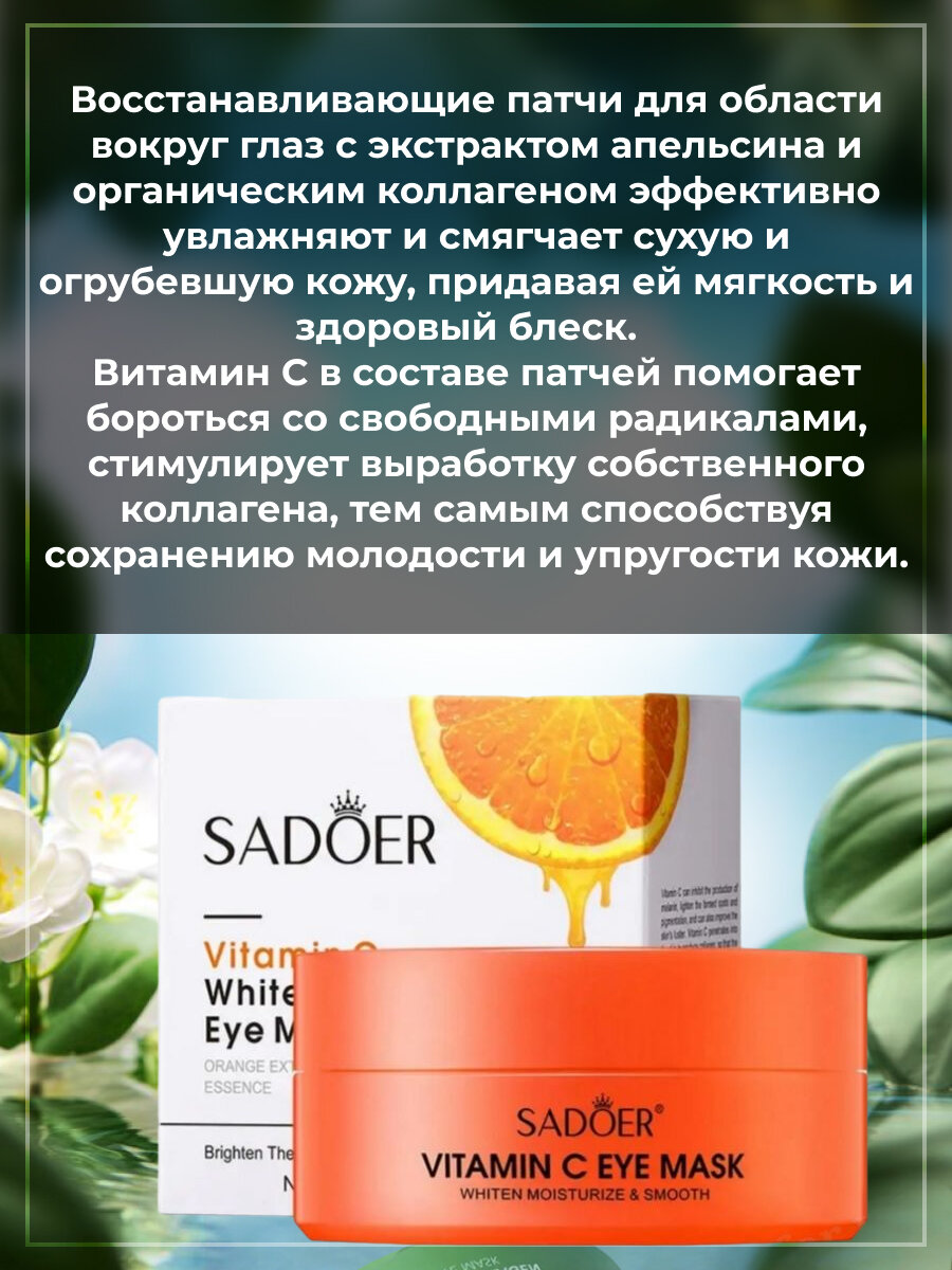 Увлажняющие и выравнивающие тон патчи для кожи вокруг глаз Sadoer с витамином С 80гр х 2шт