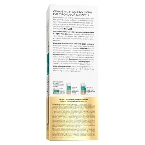 | Способ применения | Ежедневно утром и вечером наносить на очищенную кожу вокруг глаз. Можно применять под макияж. |