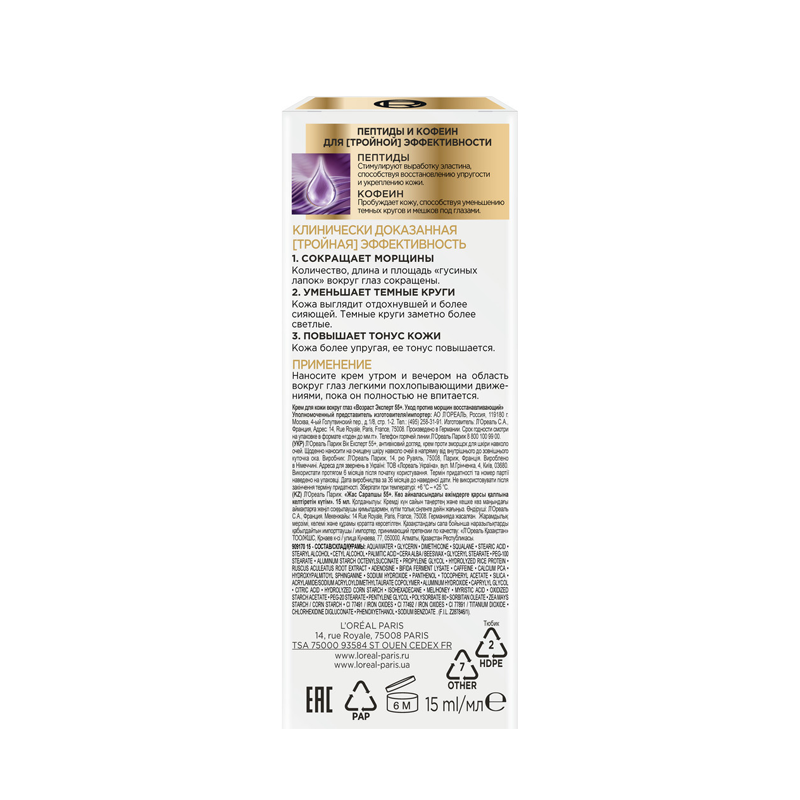 L'Oreal Крем для области вокруг глаз "Возраст эксперт 55+" против морщин, восстанавливающий, 15 мл интересное: