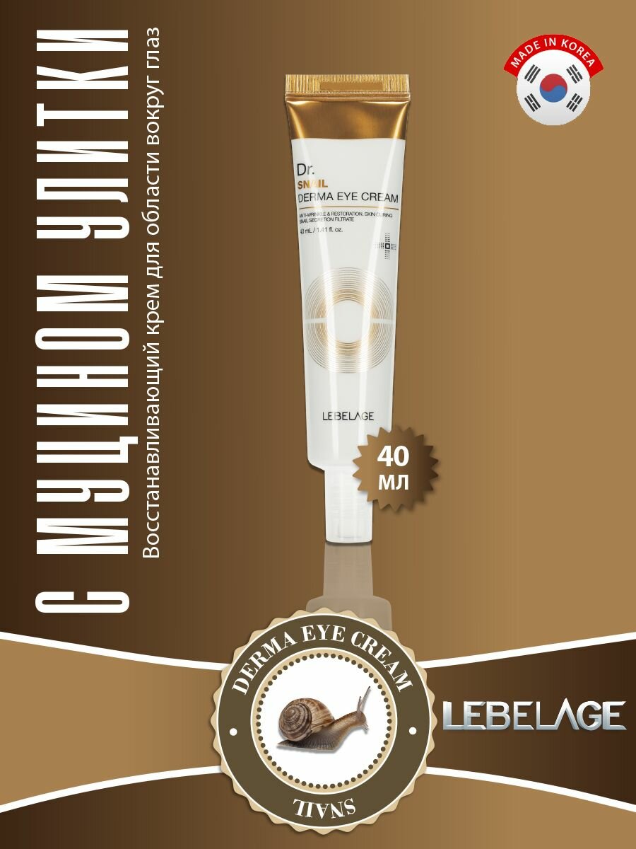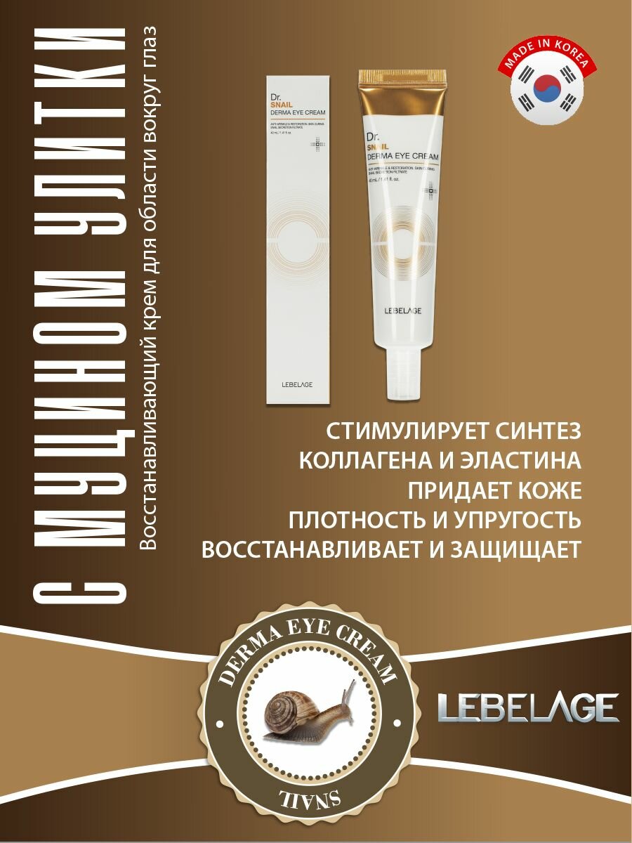 Купить LEBELAGE Восстанавливающий крем для области вокруг глаз и для ухода за кожей век с муцином улитки, корейская косметика. 40мл