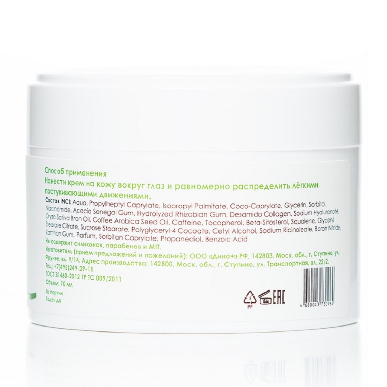 | Эффект | лифтинг / от кругов под глазами / от морщин / питание / повышение упругости / снятие отеков / увлажнение |