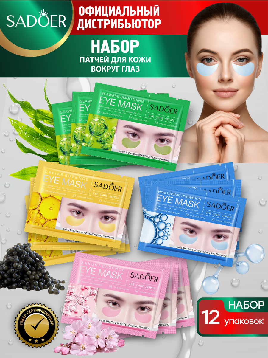 Купить Набор патчей для кожи вокруг глаз Sadoer гиалуроновые+с эссенцией икры+лифтинг-эффект+сакура по 3 шт