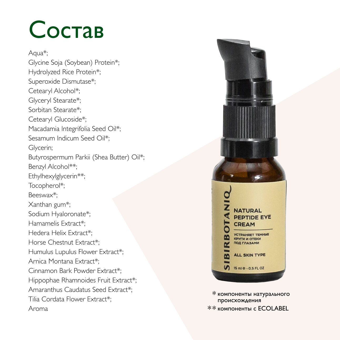 Крем для век SIBIRBOTANIQ от тёмных кругов и отёков с пептидами, 15 мл интересное: