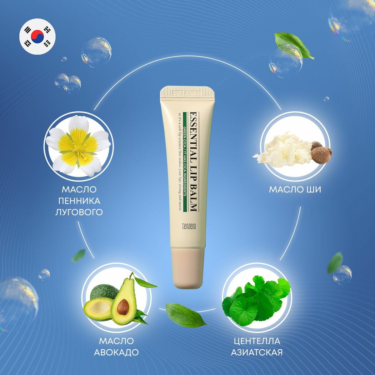 TENZERO Увлажняющий бальзам для губ с коллагеном, корейская косметика 9г Essential Lip Balm Blue Collagen
