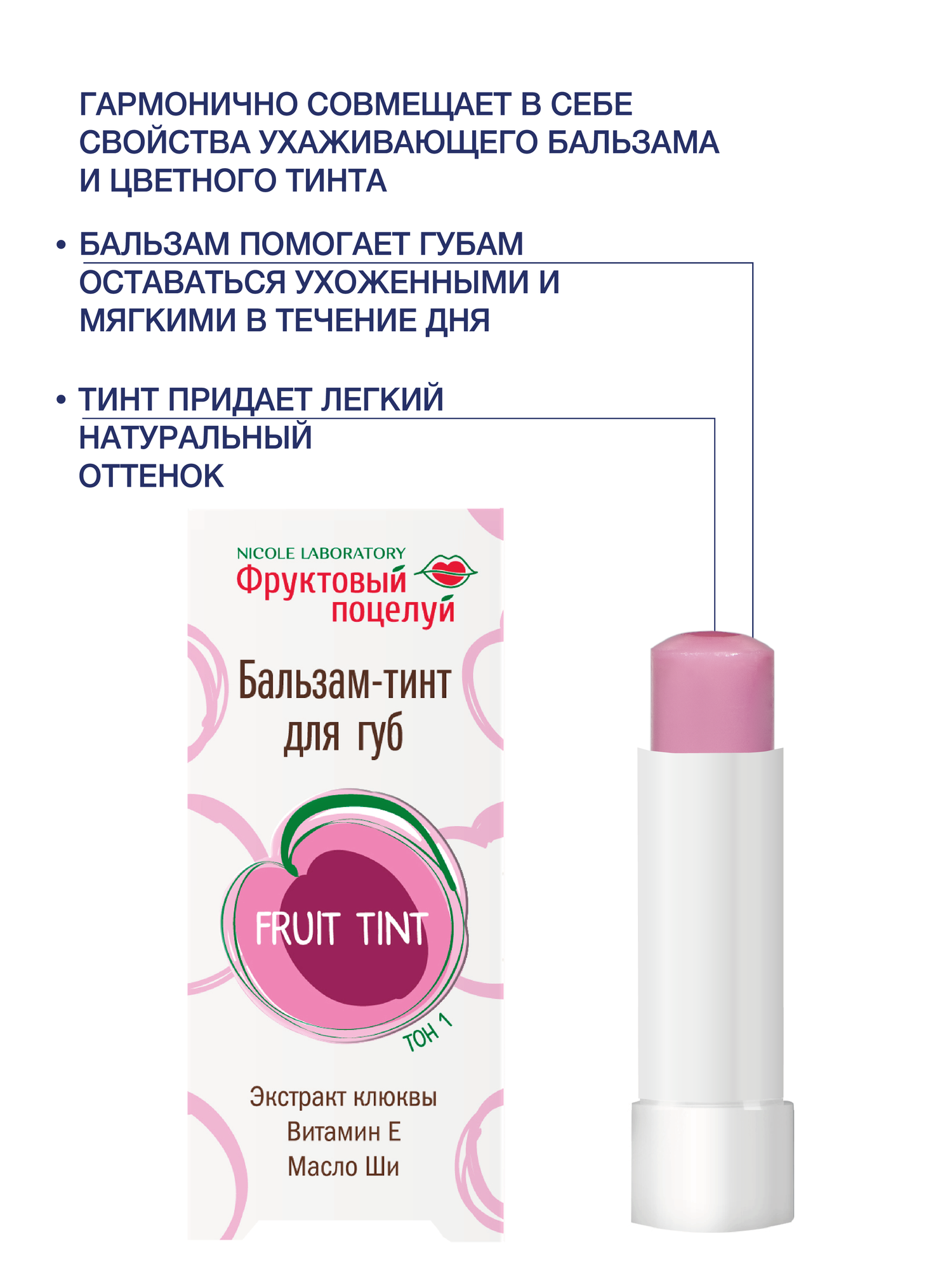 Фруктовый поцелуй Бальзам-тинт для губ Fruit tint тон 1 4,3 г 1 шт