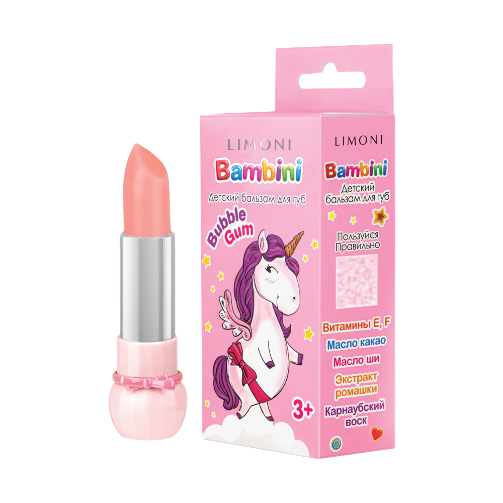 Купить Детский бальзам для губ увлажняющий "Bambini Sparklinq Bubble Gum" LIMONI тон 02