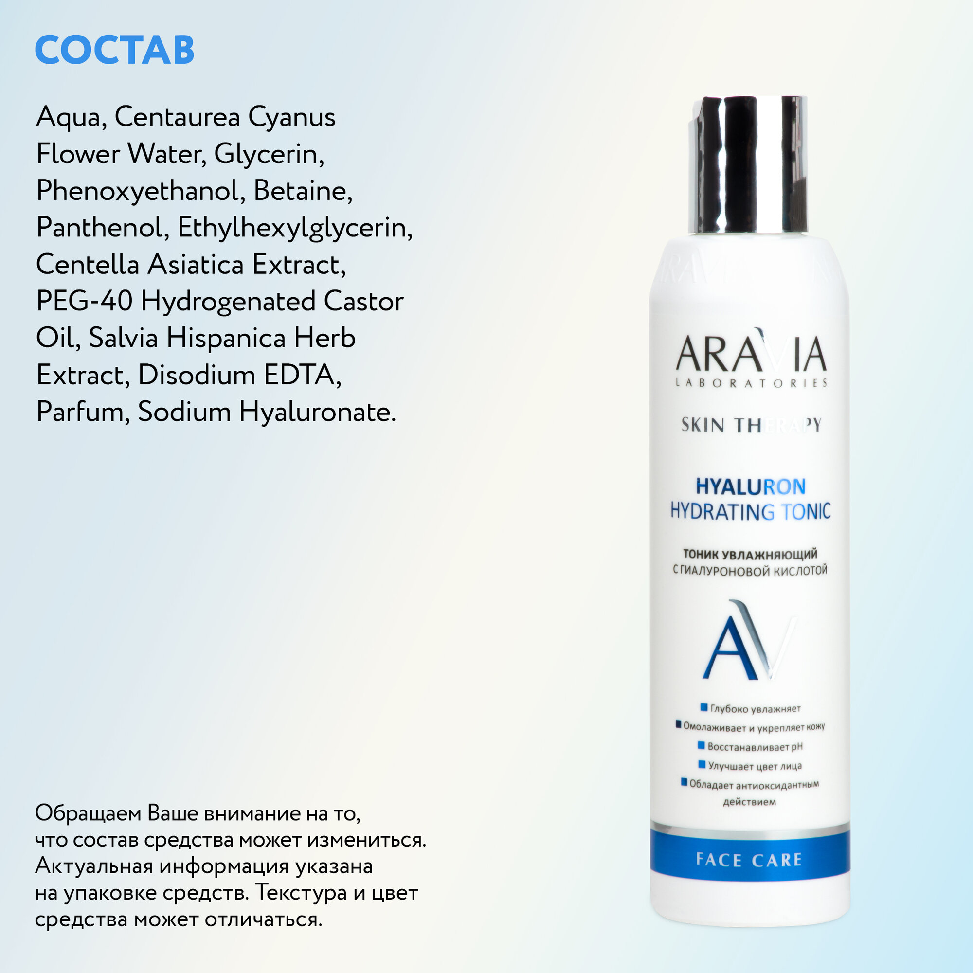 ARAVIA Тоник увлажняющий с гиалуроновой кислотой Hyaluron Hydrating Tonic, 200 мл интересное:
