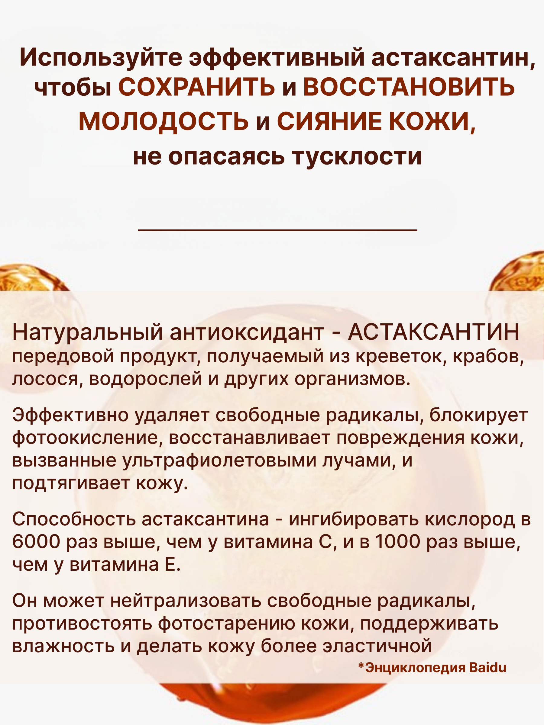 | Состав | Гиалуроновая кислота; Экстракт центеллы азиатской (CENTELLA ASIATICA); Mengyuan Gum; Arónia melanocárpa(антоцианы), Astaxanthin, Экстракт листьев зеленого чая (Camelia Sinensis); Экстракт Шлемника байкальского (SCUTELLARIA BAICALENSIS); Каприлилгидроксамовая кислота; Динатриевая соль ЭДТА; Galactomyces, EUGLENA GRACILÍS, гидролизованный коллаген, бутандиол, Yeast Extract , 1,2-Hexanediol , экстракт листьев розмарина (ROSMARINUS OFFICINALIS), экстракт корня Polygonum cuspidum (POLYGONUM CUSPIDATUM) , Экстракт цветков ромашки (CHAMOMILLA RECUTITA), Экстракт корня солодки голой (GLYCYRRHIZA GLABRA); Caprylyl glycol; Мочевина, Бетаин, Никотинамид; Триэтаноламин |