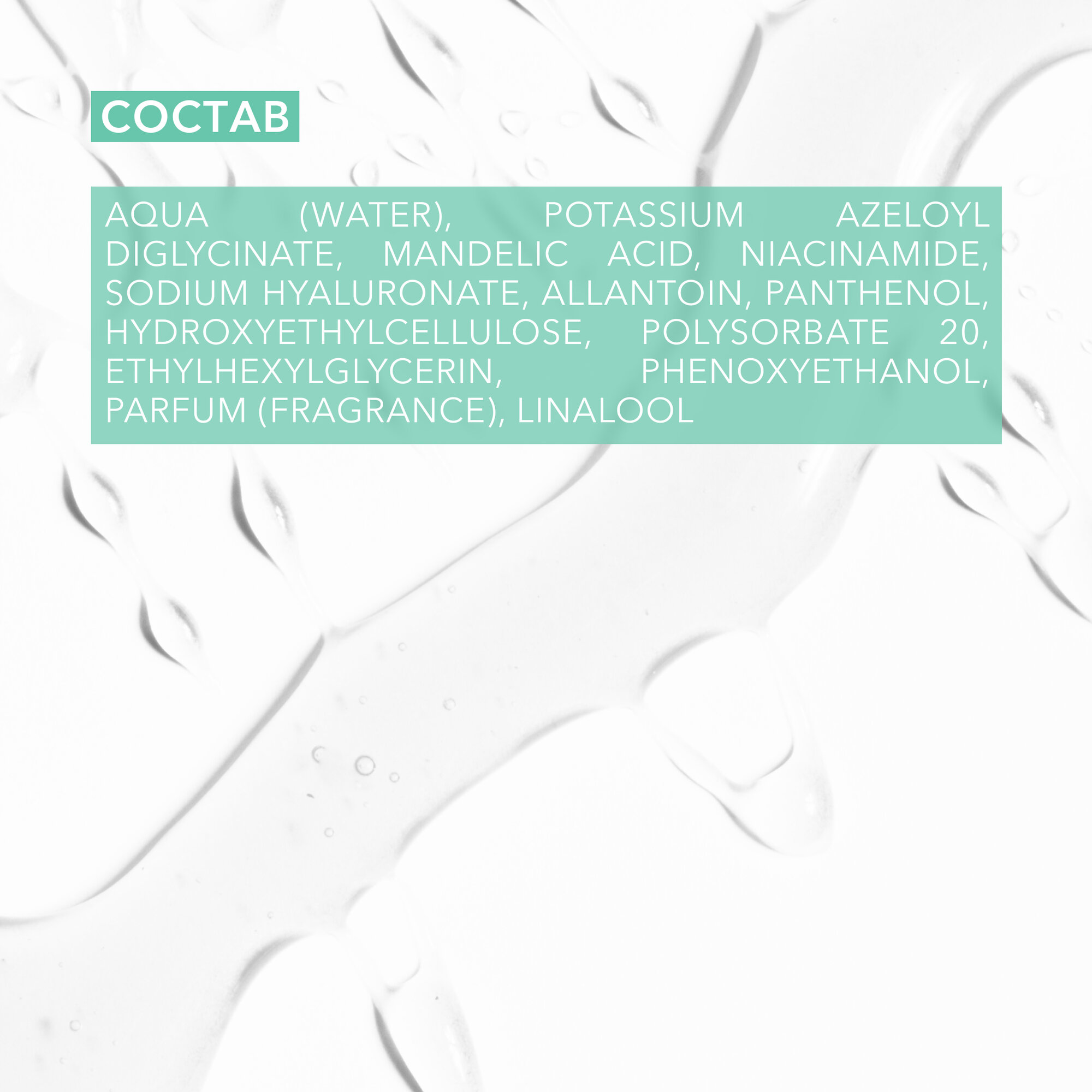 | Состав | Aqua (Water), Potassium Azeloyl Diglycinate, Mandelic Acid, Niacinamide, Sodium Hyaluronate, Allantoin, Panthenol, Hydroxyethylcellulose, Polysorbate 20, Ethylhexylglycerin, Phenoxyethanol, Parfum (Fragrance), Linalool |